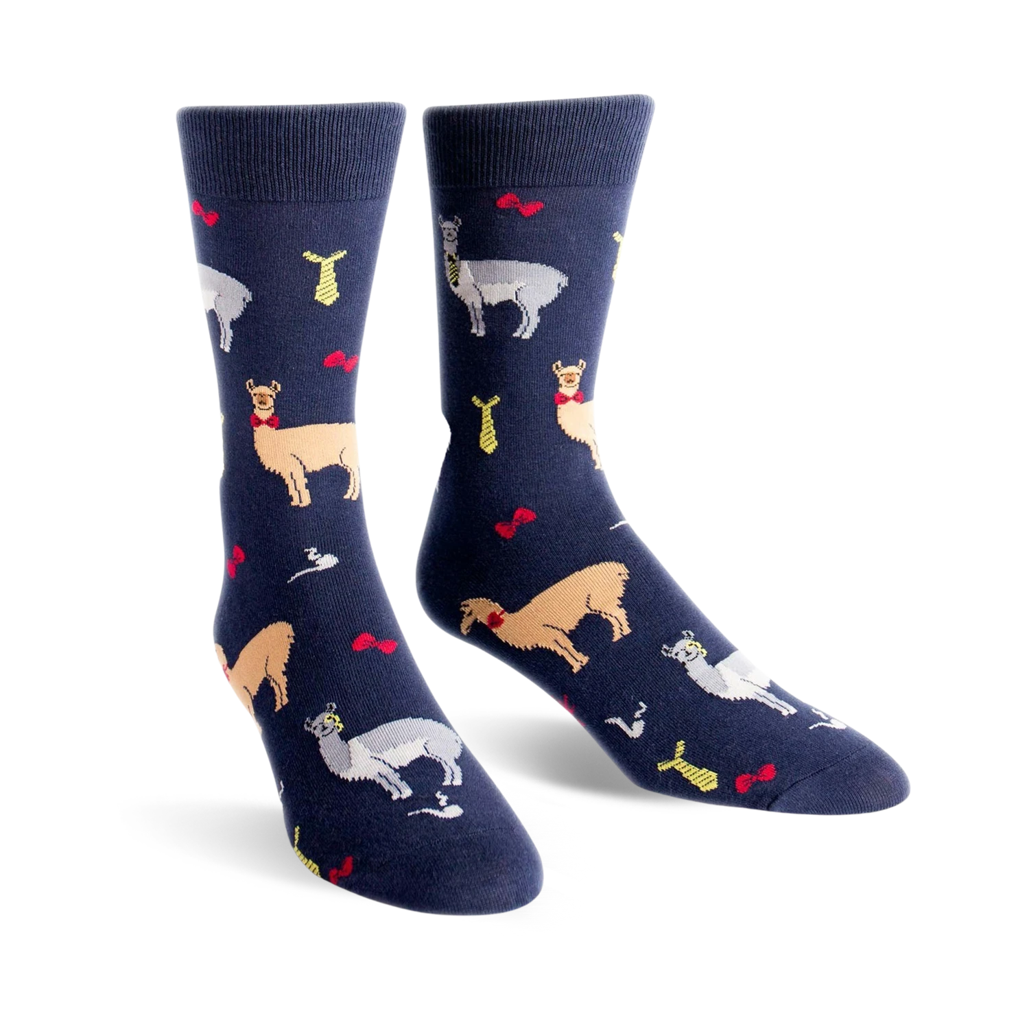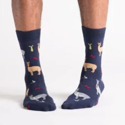 Llama Drama Crew Socks: Bring the drama to your feet with these navy blue socks featuring llamas wearing dapper bow ties. These socks are sure to turn heads and spark conversations wherever you go. Fun Fact: Llamas can’t spit like camels, but they do make a strange humming sound when they’re feeling annoyed. So, next time you’re feeling a little dramatic, slip on a pair of Llama Drama socks and embrace your inner llama!
