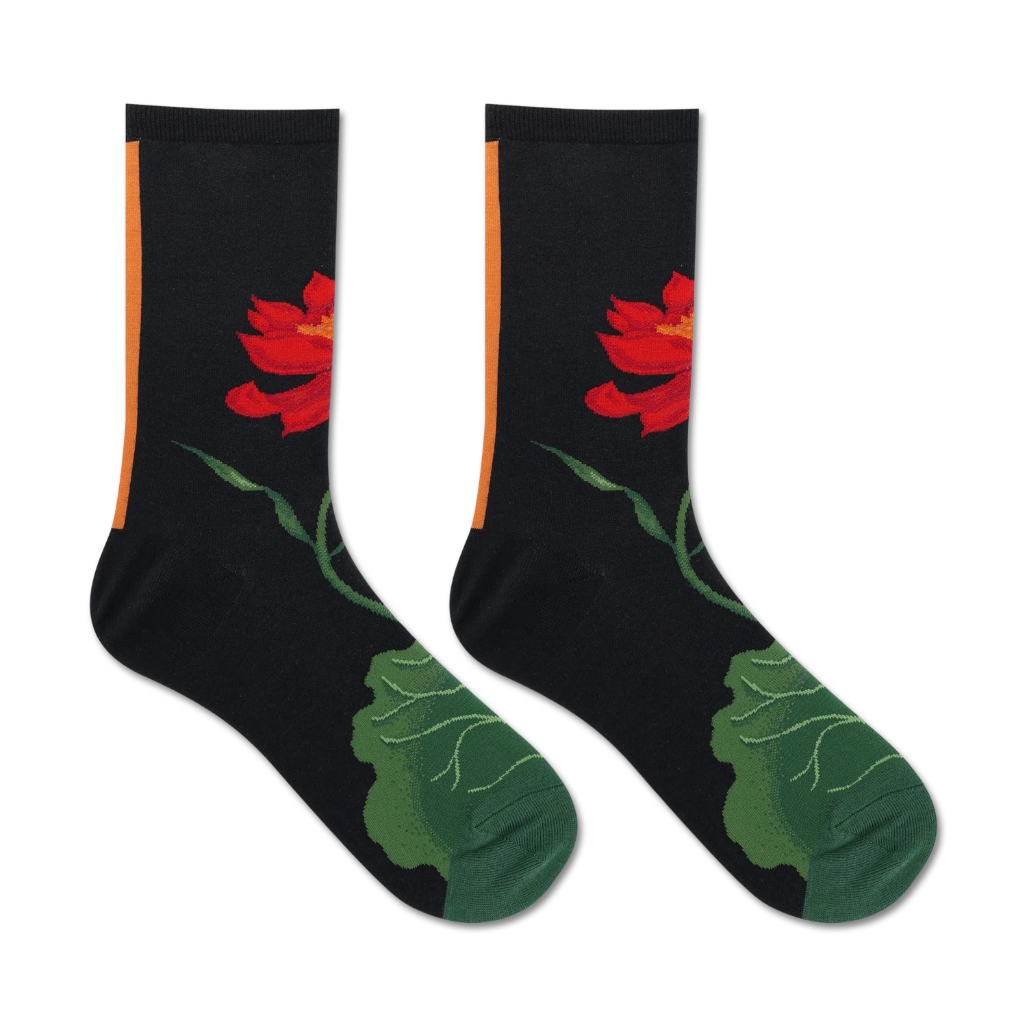 Lotus Floral Crew Socks: These socks bloom with confidence. Unleash the inner flower power with these socks covered in red and green lotuses. Perfect for the lotus lover in your life, they’ll add a splash of color to anyone’s day. Plus, crew length means they’re just the right height for any occasion. Wear these lotus socks and watch your steps blossom with beauty!