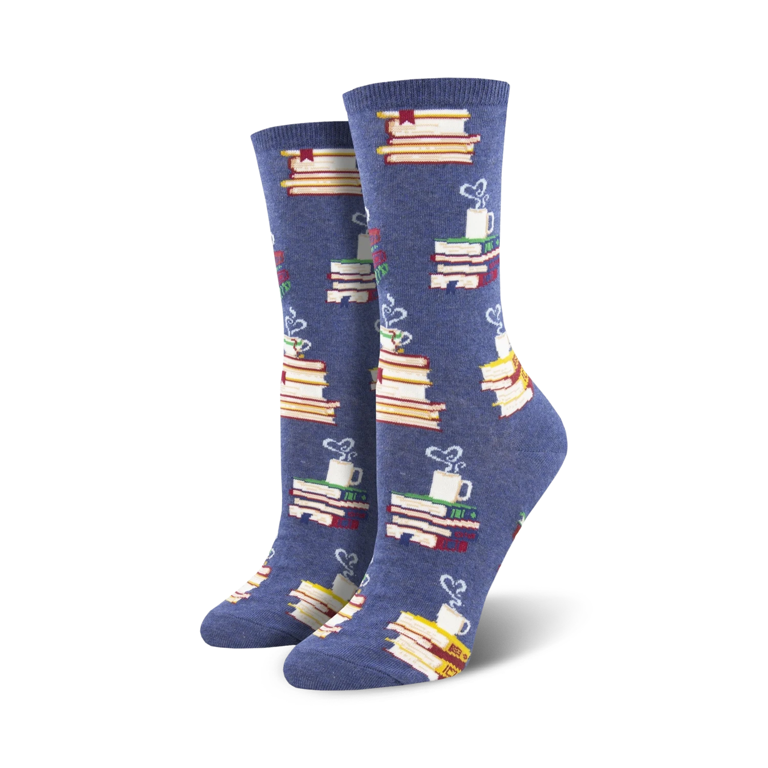 Sink your feet in a cup of literary cool and let your toes bask in the glow of knowledge! These story-telling socks wrap your feet in crew-length comfort, adorned with blue books and white coffee mugs steaming inspiration. You’ll be the talk of the book club in these literary-themed wonders.