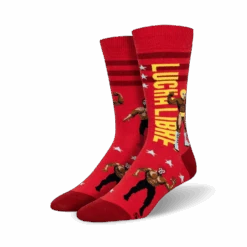 Prepare for a sock-tacular showdown with our Lucha Libre Crew Socks! These light blue socks feature a ringside view of luchadores, the masked Mexican wrestlers, battling it out in vibrant red and blue masks. Step into the ring of fashion with these fun and energetic socks, perfect for any fan of wrestling, lucha libre, or just plain fun. Whether you’re cheering on your favorite luchador or just adding some flair to your sock game, these socks are sure to be a knockout!