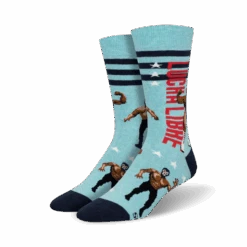 Prepare for a sock-tacular showdown with our Lucha Libre Crew Socks! These light blue socks feature a ringside view of luchadores, the masked Mexican wrestlers, battling it out in vibrant red and blue masks. Step into the ring of fashion with these fun and energetic socks, perfect for any fan of wrestling, lucha libre, or just plain fun. Whether you’re cheering on your favorite luchador or just adding some flair to your sock game, these socks are sure to be a knockout!