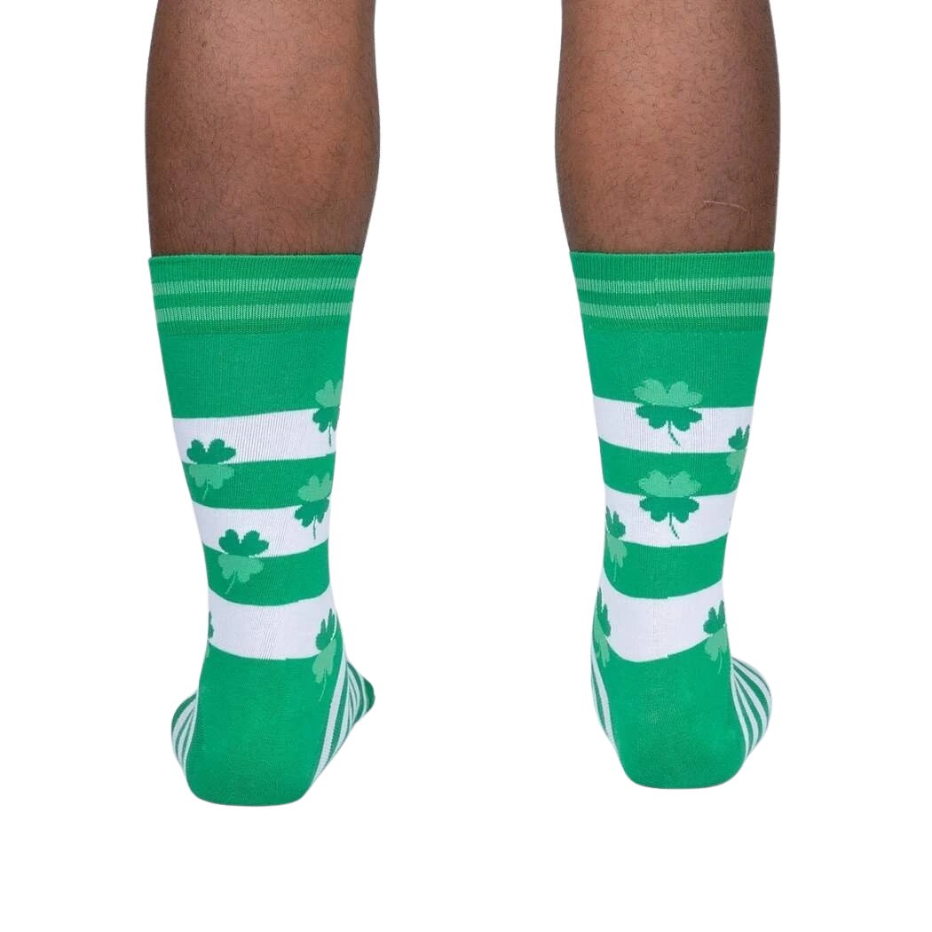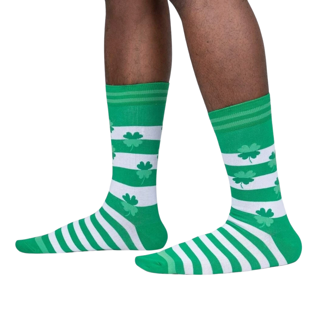 ðŸ€Lucky You 🀠mid-calf crew socks are ready to bring you the luck of the Irish! Our crew length white socks are adorned with cheerful green stripes and four-leaf clovers, the ultimate St. Patrick’s Day accessory! Celebrate your Irish spirit in toe-tally adorable fashion. Post a pic on Insta to make your friends green with envy!ðŸ€ðŸ§¦ðŸ’š