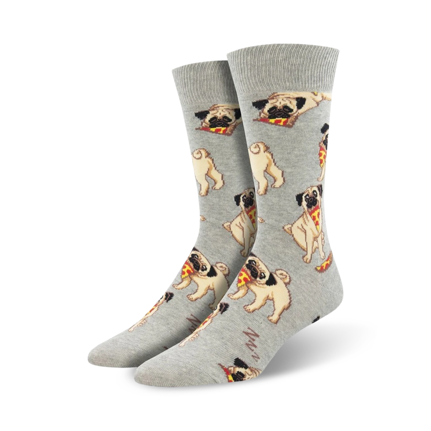 Meet Man’s Best Friends, the sock that proves pizza is the way to man’s (and dog’s) heart. These fun, gray crew socks are covered with a pattern of cartoon pugs wearing black collars and chowing down on pizza. Like your dog, you’ll want to take a big bite out of these socks and never let them go. They’re the perfect choice for any dog lover with a sense of humor.