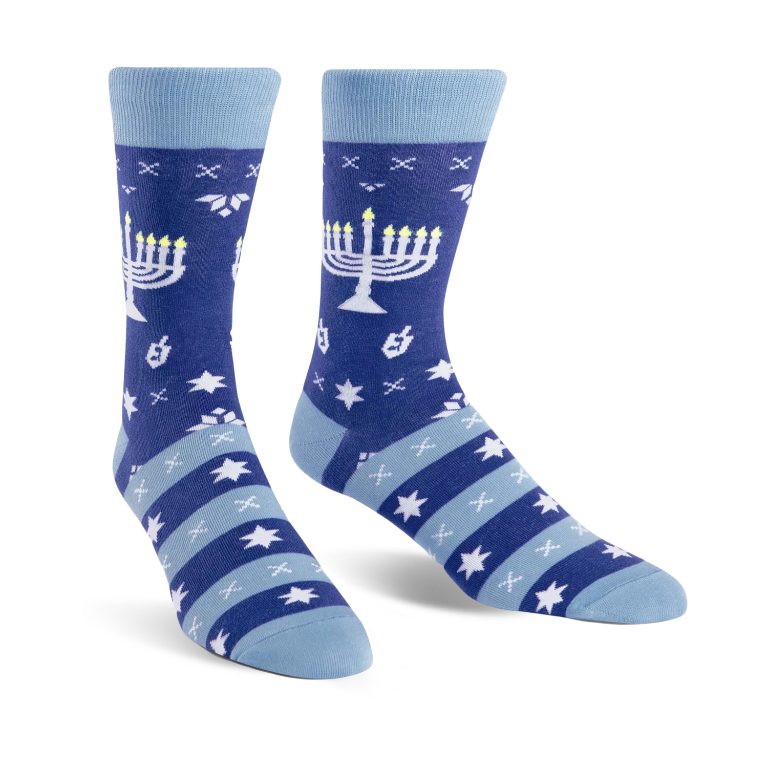 When the world gives you Hanukkah, make some latkes with these mazel toes! We’ve tossed tradition out the window, and these socks simultaneously celebrate the holidays and remind you to let the menorah-go! With a bold blue background and festive patterns of menorahs and snowflakes, these crew socks are ready to be the star of your holiday get-together or your regular Tuesday – because who says we can’t celebrate Hanukkah all year long?