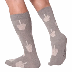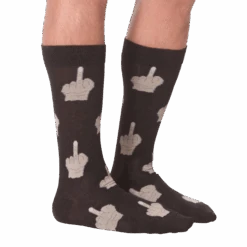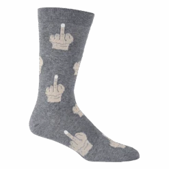 Sometimes you can’t quite express what you are feeling with words. It takes great action to get the message across. This funny pair of all gray crew socks will get your point across loud and clear! Each crazy sock features a funny pattern of floating middle fingers. Can’t be heard? Flip em’ the bird!