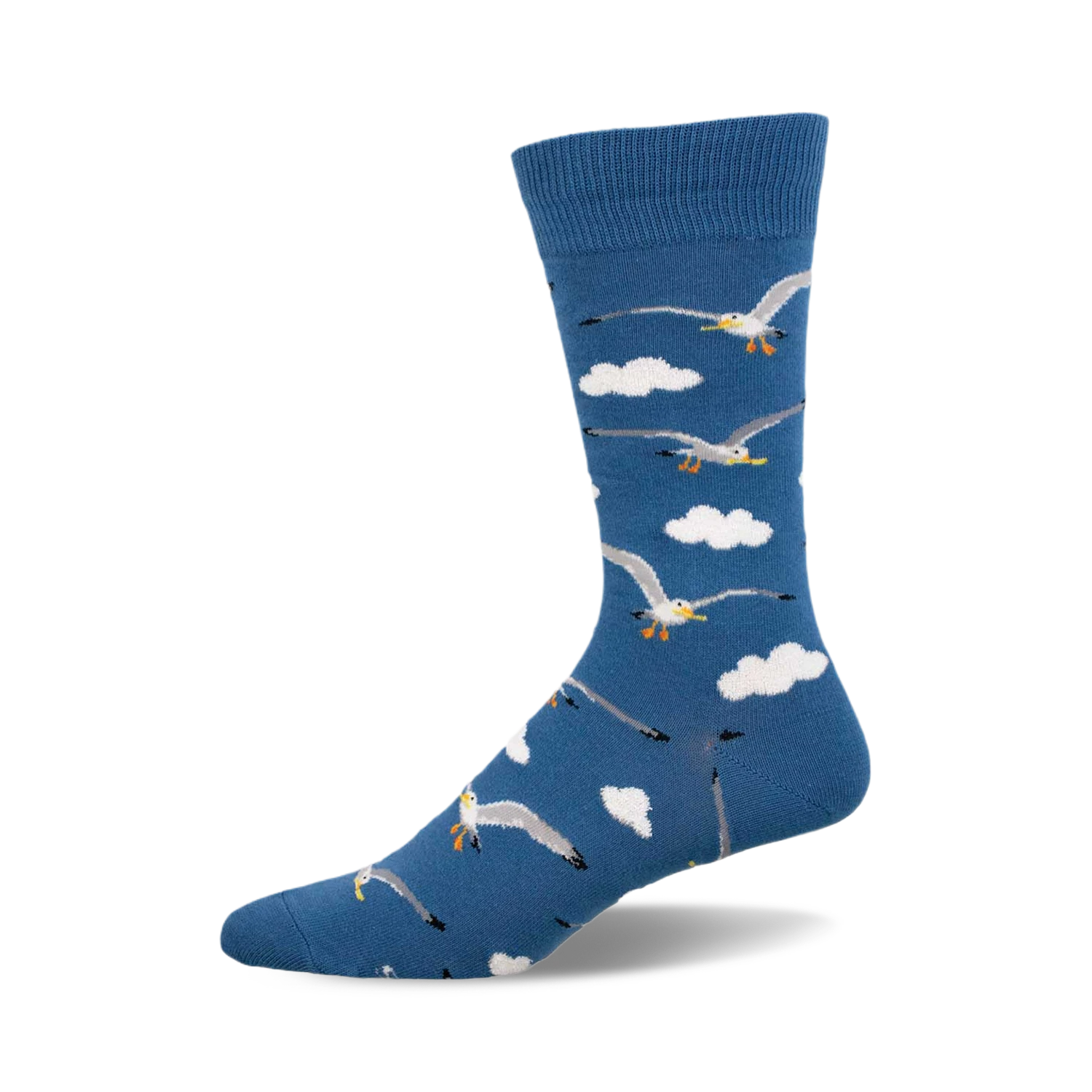 There’s something about a vibrant blue sky dotted with seagulls and clouds that lifts the spirit. Reflect that uplifting feeling with the “Mine Now” socks, as blue as the sky and designed to bring smiles reminiscent of a toddler’s joy with their favorite toy. These socks invite you to claim a little piece of happiness for yourself.