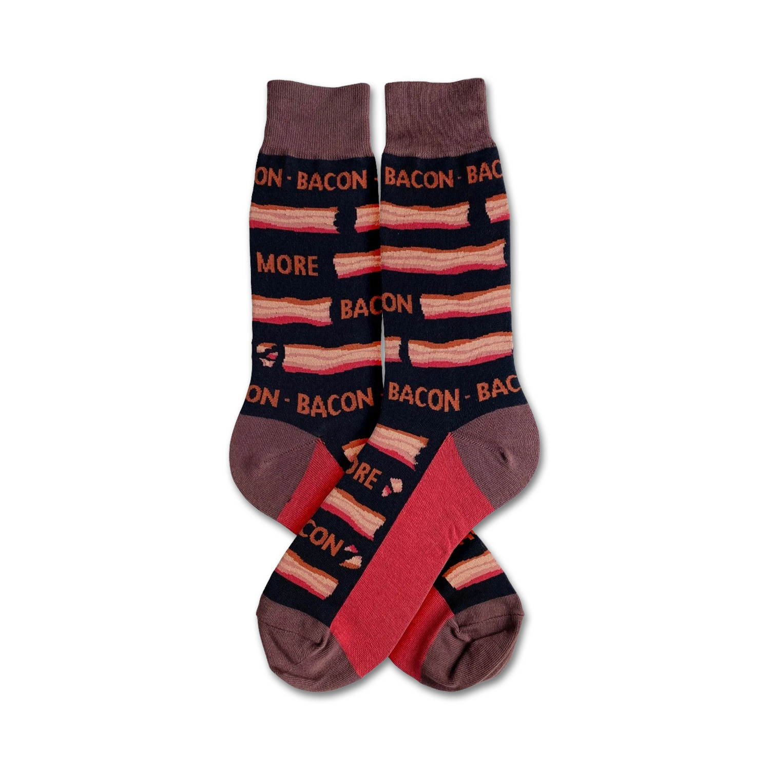 Who needs boring black socks when you can slide into these bacon striped crew socks? We’ve got you covered (pun intended) from your toes to your calves with this irresistible and tasteful attire. Better yet, while we can’t guarantee that wearing these will get you more bacon, you can enjoy the comforting thought of, More bacon every time you look down at your feet. They’re the perfect novelty socks for your favorite bacon lover, or for anyone who enjoys a tasty breakfast.