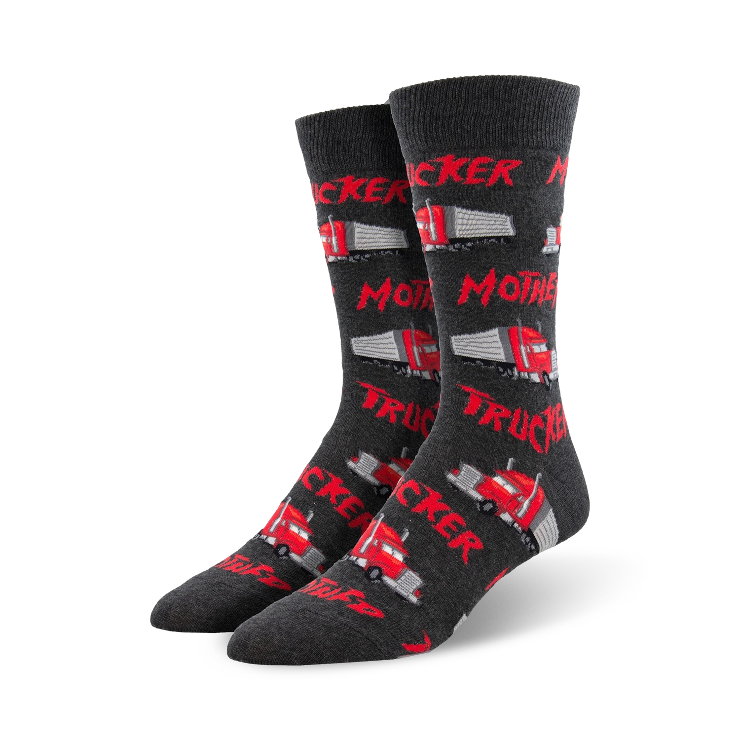 Got a mom who’s one tough cookie? Then show your appreciation with these “Mother Trucker” socks. Made for men who know what it takes to be a mother trucker, they feature a convoy of cherry-red trucks with “MOTHER” stamped on the side, set against a gray backdrop. And just like your mom, they’re ready to haul whatever life throws their way. Whether running errands, hitting the open road, or just keeping your feet warm on a lazy day, these crew length socks will remind you of the strength and resilience of the best trucker in your life.