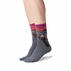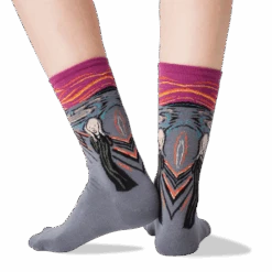 Featuring the iconic masterpiece by Edvard Munch, “The Scream”, these socks will have you Screaming with joy at how cool they are. Art lovers will appreciate the beauty of these awesome novelty socks. Available in grey with your choice of cranberry or orange accent colors