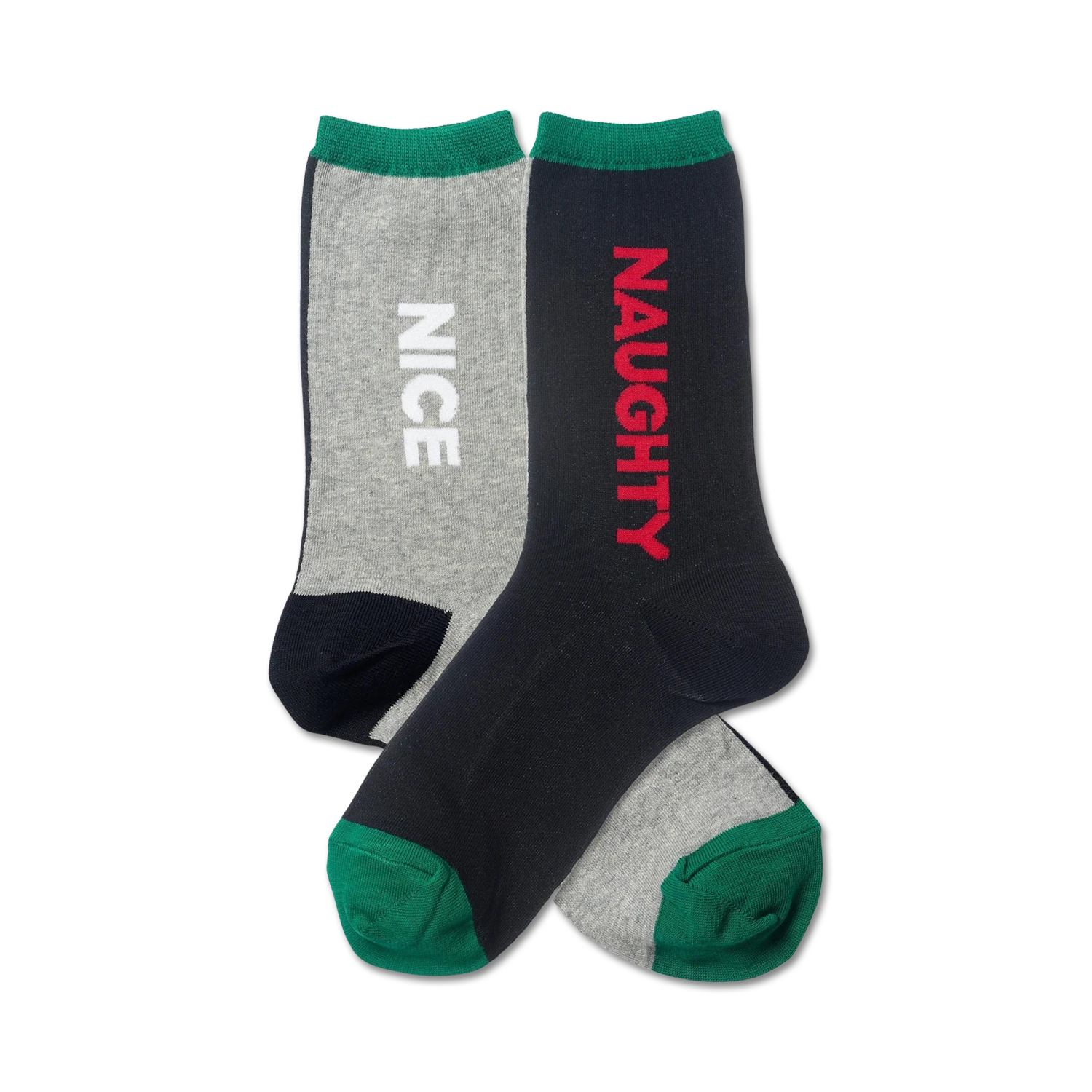 The naughty and nice crew socks are the perfect gift for the person who has everything. They will make everyone smile with their festive holiday vibes, and with their bold font, bright colors, and contrasting black and gray you are sure to be on someone