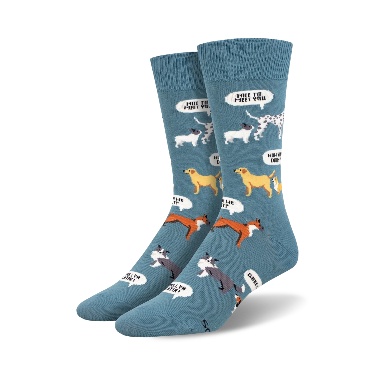 New Dog, Who Dis? socks – Put on these blue crew socks emblazoned with friendly dogs in party hats bearing messages like “{Hi}”, “{Bye Felicia}”, and the ever-meme-able “{How you doin?}”. They’ll always introduce ya to new pe(o)pals and get that conversation flowing. Fun fact: Dogs are one of the few animals capable of unconditional love (and it shows in those sweet, doggo smiles)!