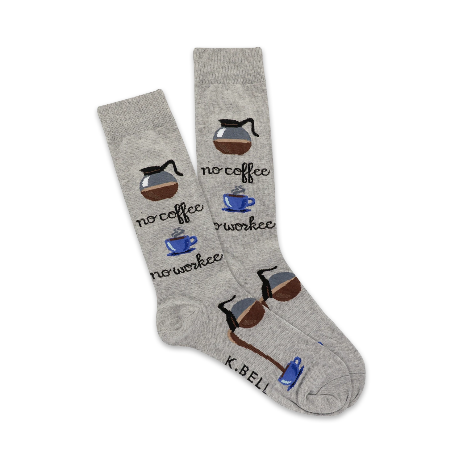 Start your day off on the right foot with our No Coffee No Workee socks! These gray crew socks are adorned with a fun pattern of coffee pots and coffee cups, and the text “No Coffee No Workee” is proudly displayed on each sock. Perfect for the coffee lover in your life, these socks are the perfect way to show your love for your morning cup of joe, and to add a touch of fun to your daily wardrobe. Whether you’re at work, at home, or just running errands, these socks will make you smile and give you a boost of energy. So next time you’re feeling groggy, reach for a pair of No Coffee No Workee socks and let the caffeine do its magic!
