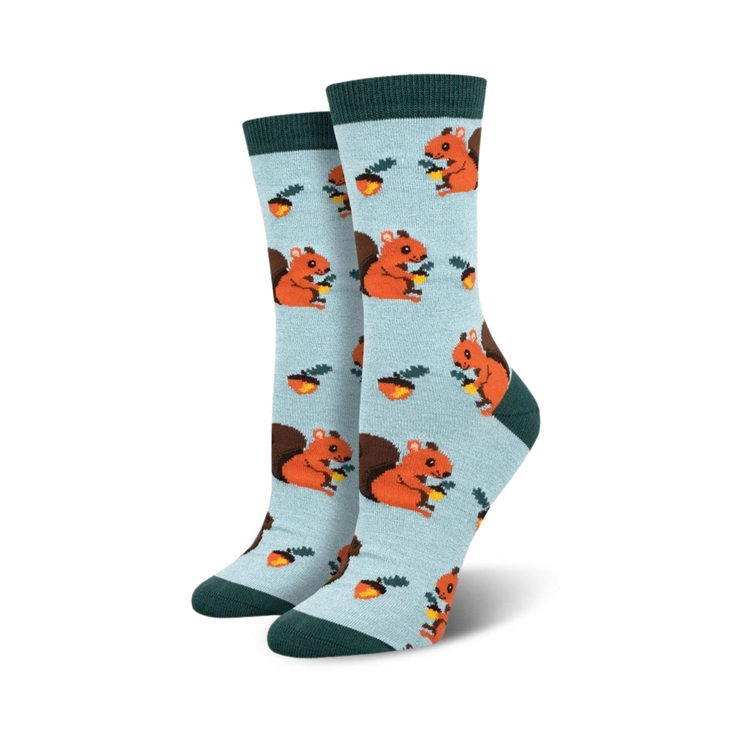Hey party paws! Get ready to go nuts over these whimsical Nuts For Squirrels Bamboo Crew Socks designed for the ladies. These light blue socks are scattered with a pattern of cartoon squirrels clutching nuts in their tiny paws. With their irresistible brown and orange fur and beady black eyes, these quirky squirrels will add a touch of fun to any day. So slip on a pair of these nutty socks and let your style shine bright!P.S. Did you know that squirrels can bury up to 10,000 nuts and remember where they all are? Talk about a snack stash! Show off your wild side with these Nuts For Squirrels socks today, and join the squirrel squad!