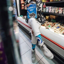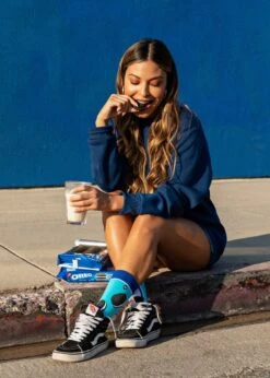 Oreo Cookies – Blue Crew Socks for Women Treat your feet to a sweet treat with our Oreo Cookies Socks. These blue crew socks feature an all-over print of everyone’s favorite cookie, the Oreo. They’re so delicious-looking, you’ll want to take a bite!