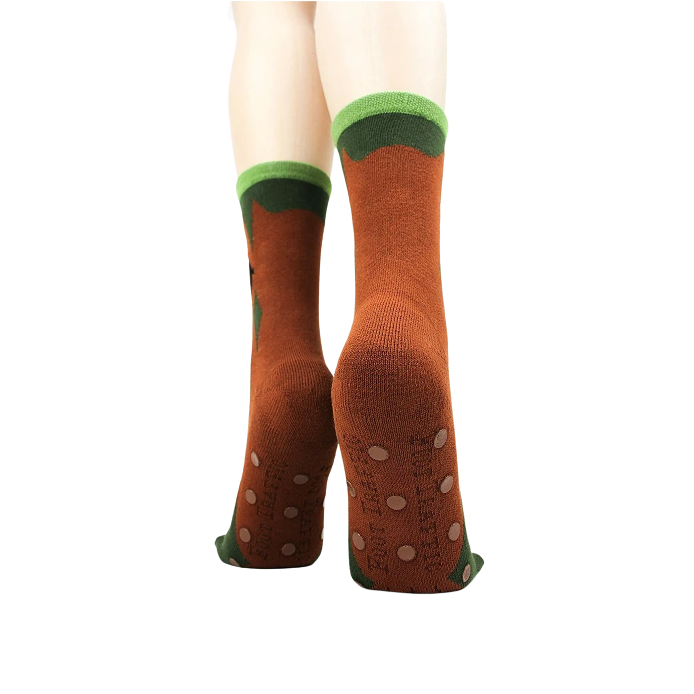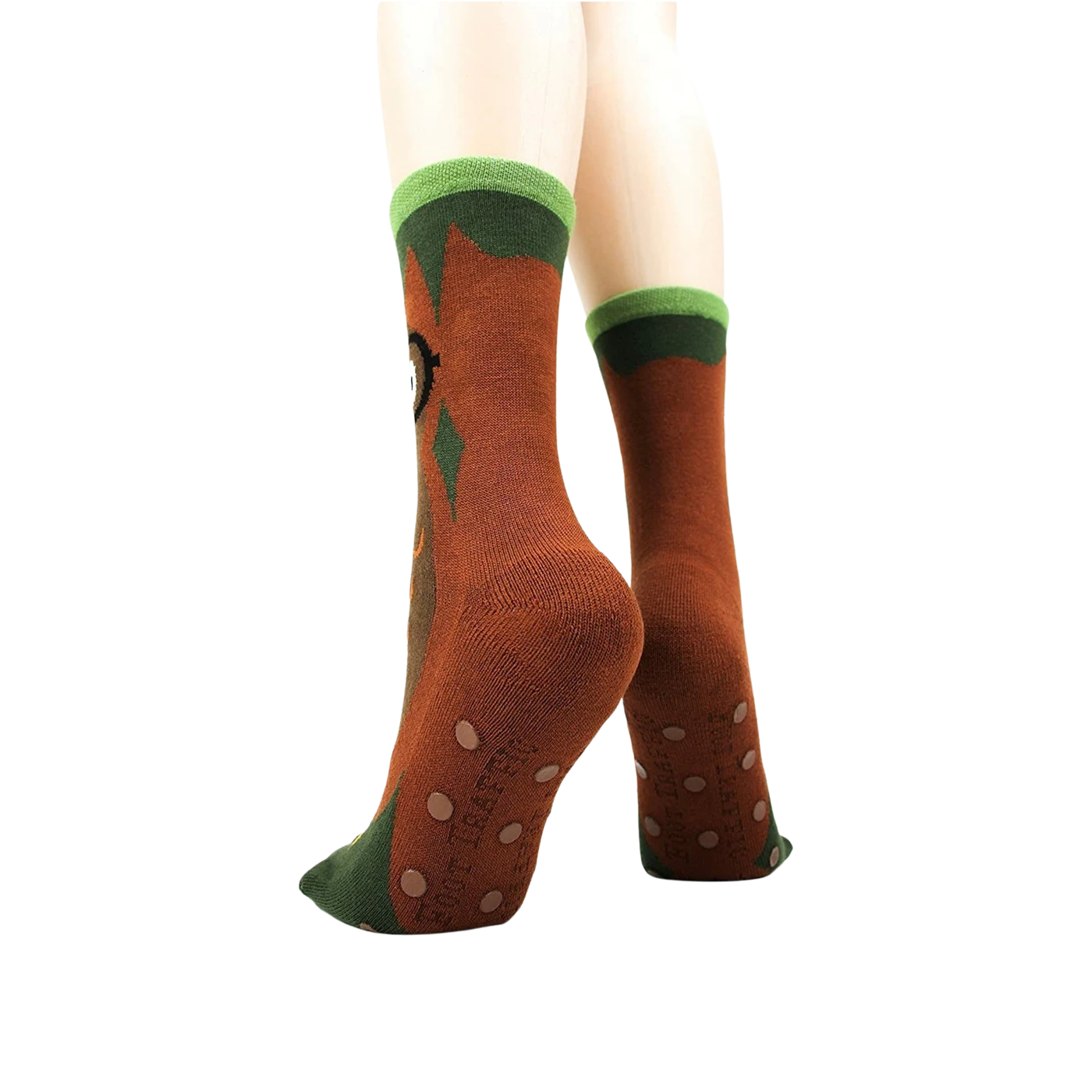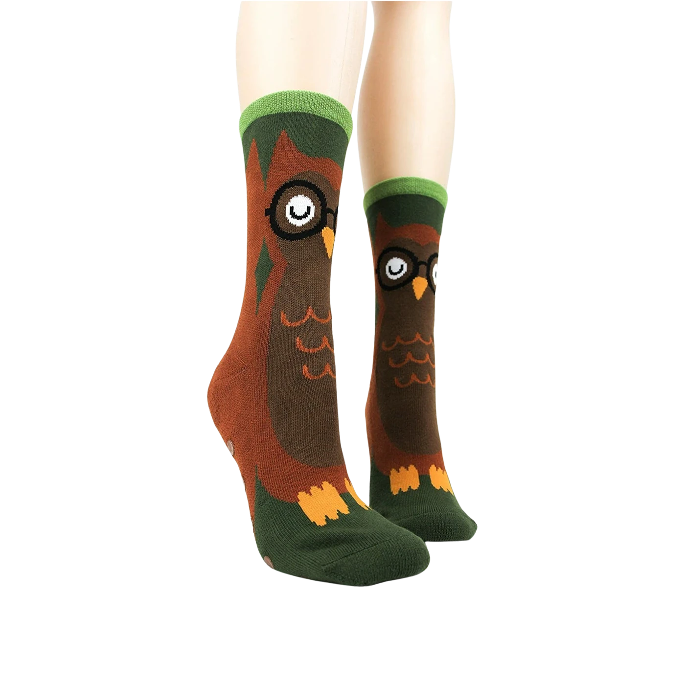 Owl Non-Skid Slipper Socks: The owls don’t hoo-ver, they slide! These clever crew socks for women feature wise owls wearing glasses and non-skid soles so you can navigate the world of wisdom without tumbles. So take flight with these brown and green hoot-couture cuties today!