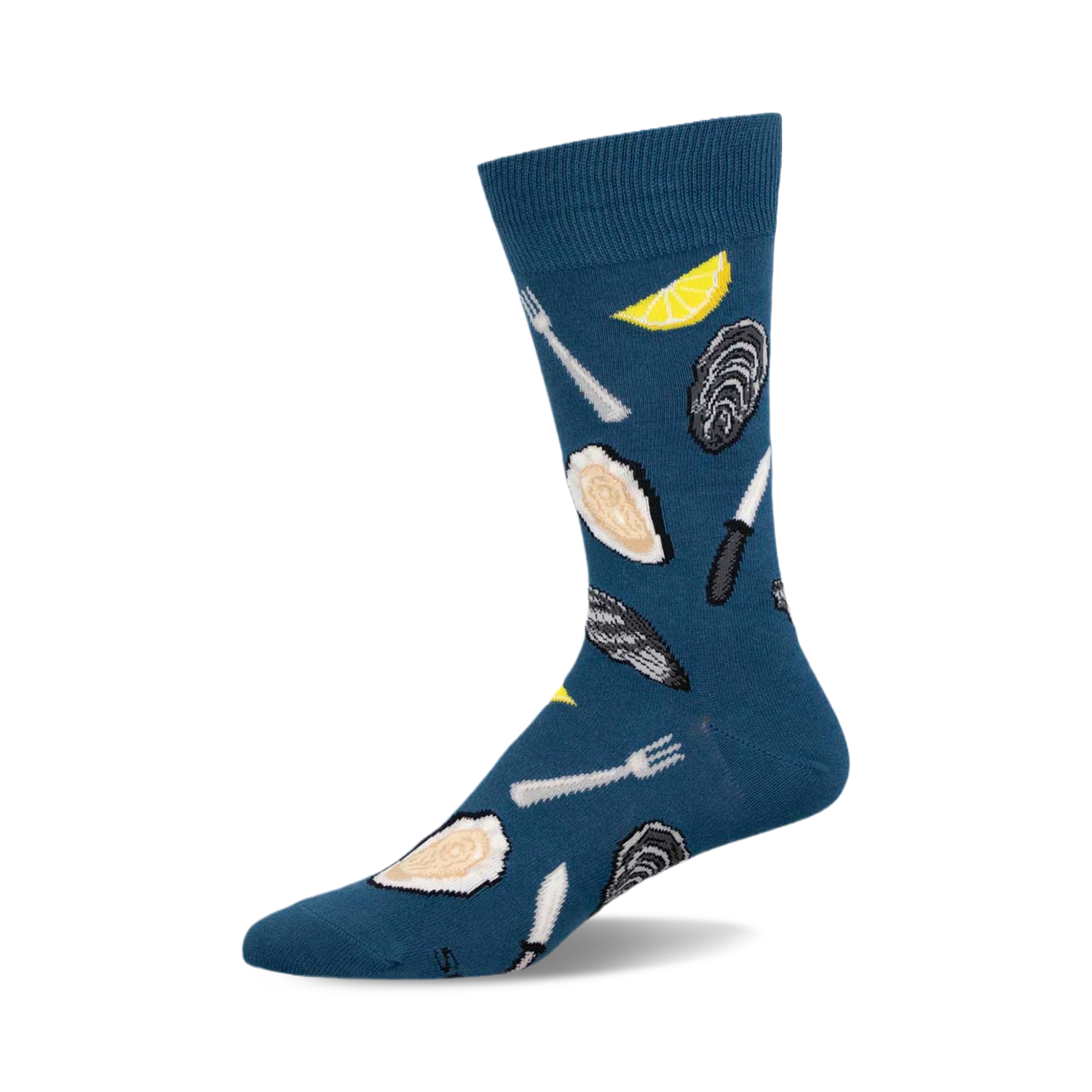 Not a fan of oysters? No worries! Slip on these socks and enjoy a touch of elegance without ever taking a bite. These playful blue socks are covered with oysters, lemon wedges, forks, and knives, giving you all the fancy vibes with none of the seafood.