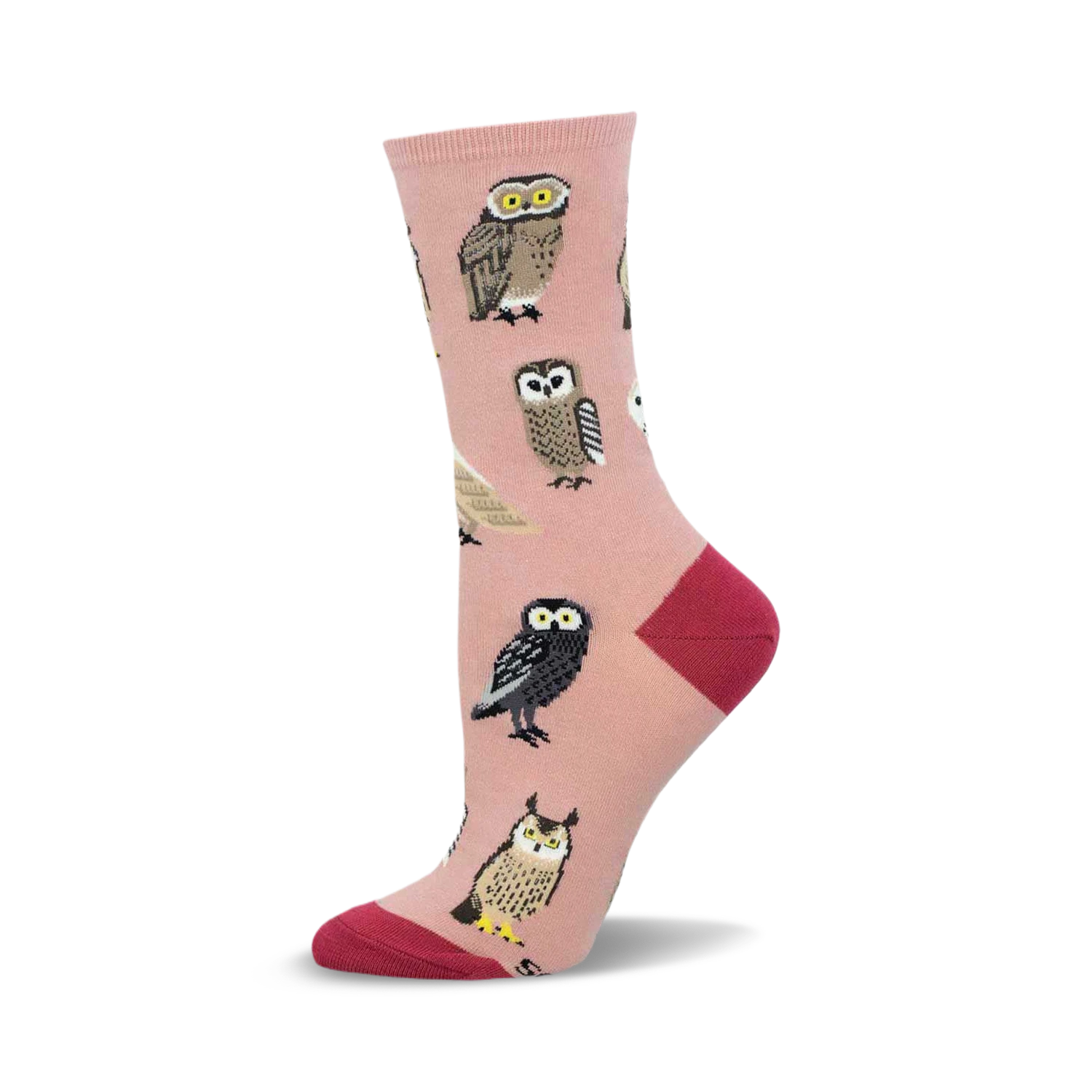Owls: the ultimate masters of stealth and wisdom. These pink socks capture their enigmatic allure with owls in various poses, showcasing their brown, black, and white feathers. Perfect for cozying up while channeling your inner silent hunter.