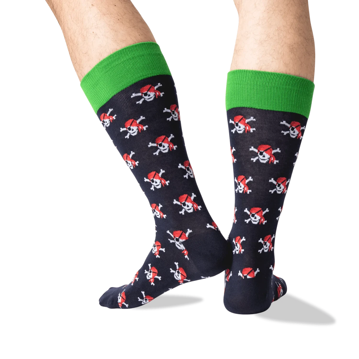 Yo ho, yo ho, you’ve got someplace to go, and you’ve got a pair of funny socks with all your mateys to take you there! Complete with bandanas and eyepatches, these guys have all the marks of a real tough crew – and they’re sure to have your back on any knife fight.