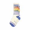 Picture this: a pizza party on your feet! Our Pizza Toppings socks have green olives, red sauce, yellow cheese, and brown mushrooms dancing around your ankles. They say, “I like to keep things cheesy.” And they’ll keep you footloose and fancy-free. Don