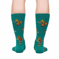 As bright as a dart, these poison dart frog crew socks are darker than the amazon jungle at night. Slip these poison dart frog socks onto your feet, and hop into adventure with these colorful and fascinating creatures. Perfect for any frog lover or daring fashion king. Poison dart frogs don’t just look cool, they’re super poisonous. Did you know that native tribes used to coat their hunting darts with the poison for a more successful kill?