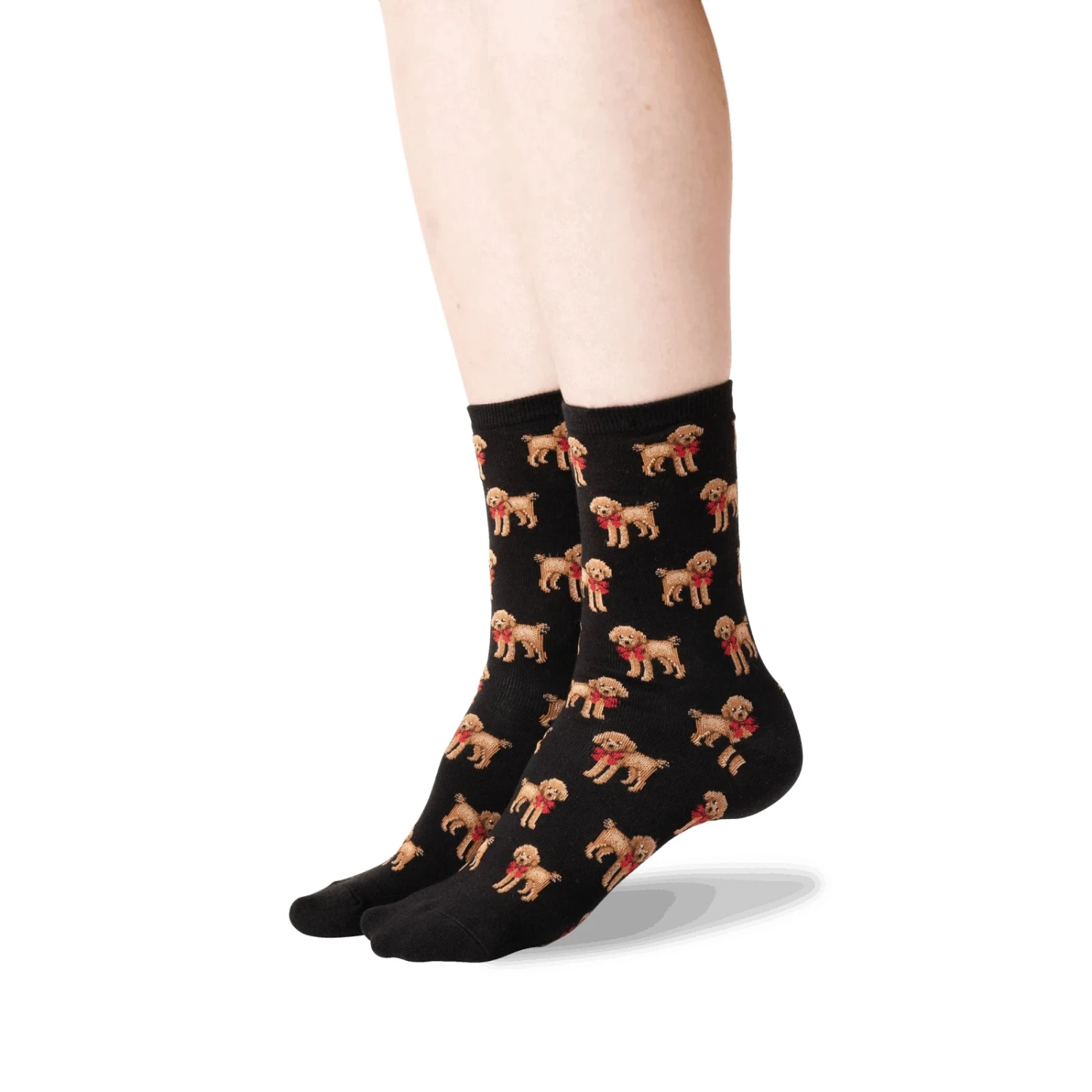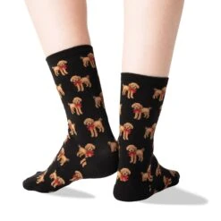 Poodles and Bows Socks by Hot Sox are the perfect gift for that socks lover in your life. These christmas themed womens crew socks come in multiple color Options and fit Women’s Shoe Size 4-10.5. Made of 47% Cotton 30% Polyester 21% Nylon 2% Spandex for comfort and durability. A pair of these cool Christmas novelty Socks will certainly give any wardrobe an instant upgrade. Machine Wash Cold, Inside Out. Only Non-Chlorine Bleach when needed. Tumble dry low. Do not iron.