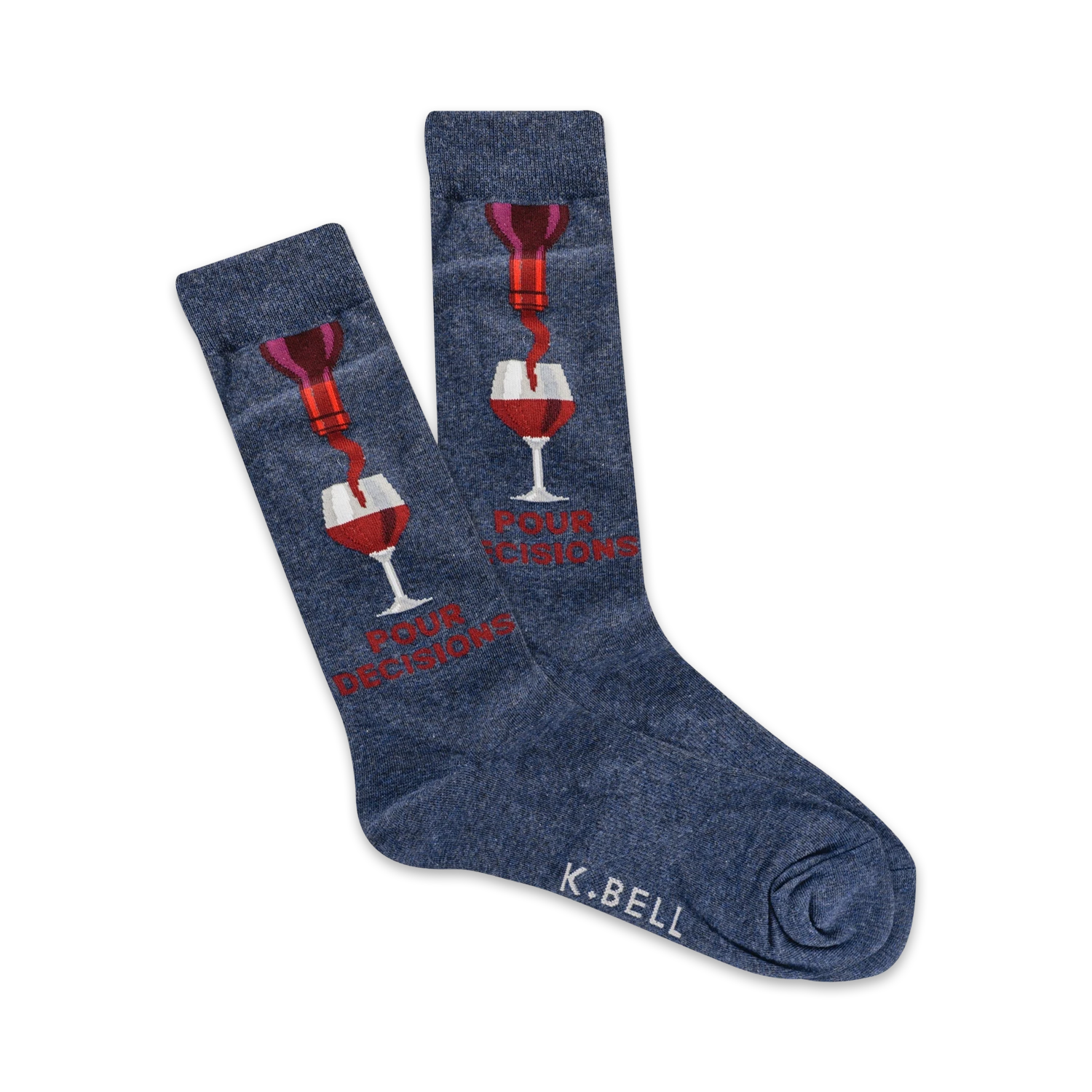 Pour Decisions wine socks: Prepare to spill your glass of humor with these Pour Decisions socks! Featuring a dark blue backdrop and a vibrant graphic showcasing a bottle of wine gracefully pouring into a wine glass, the phrase “Pour Decisions” playfully adorns the sides, inviting chuckles from fellow wine enthusiasts. Step into these crew-length socks meant just for men, and let the jolly wine-themed pattern remind you to laugh at life’s “spirited” misadventures.