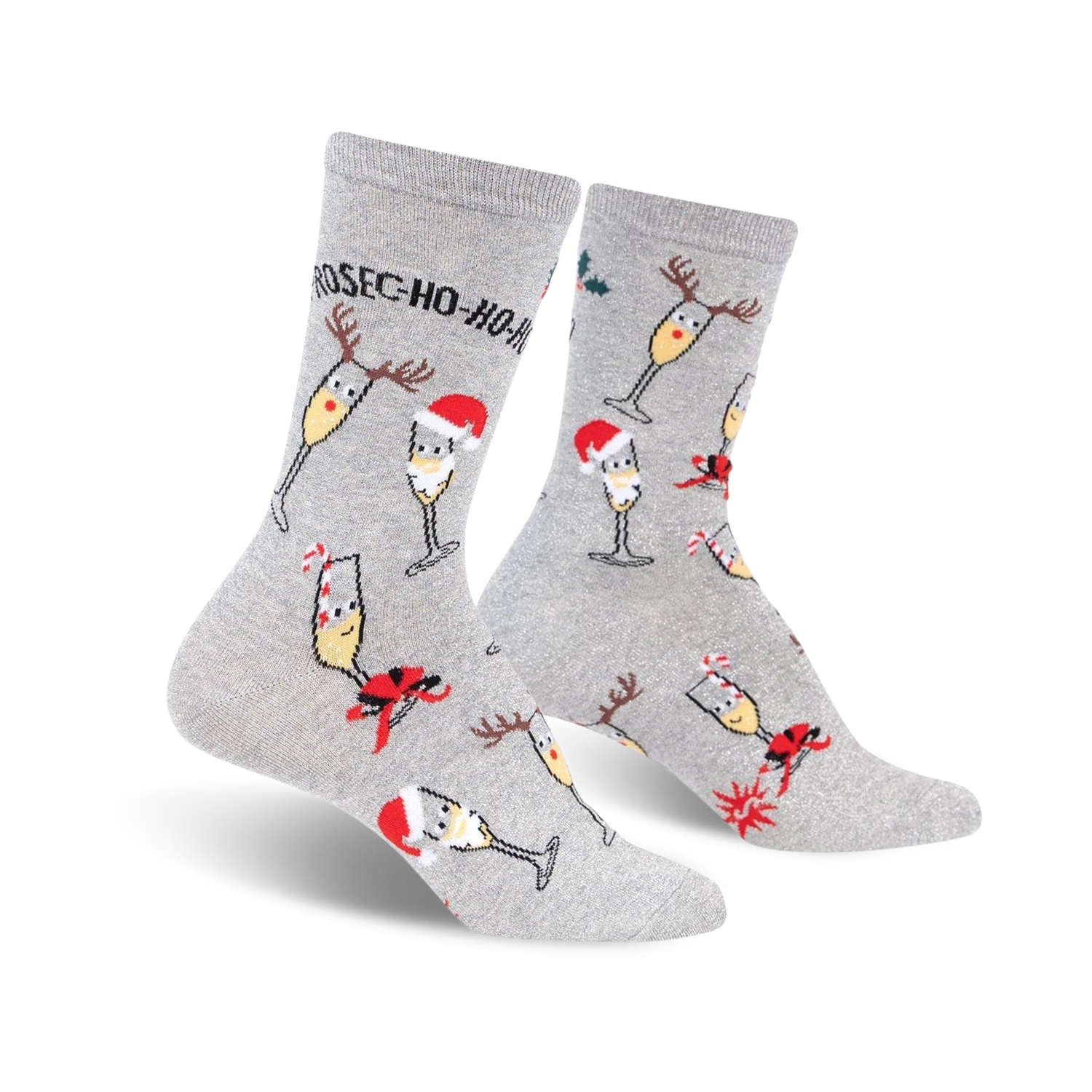 When you’re on first base, nobody throws you a curveball, so get on your Santa hat and put some sparklers in your sequined champagne glass, because it’s Christmas Eve and you’re feeling so festive in your new Prosec-ho-ho-ho! Shimmer socks. You’ll be singing “Let It Snow” while you’re throwing those celebratory glasses in the air, and you’ll be so merry and bright that they’ll even give you free sugar cookies at the North Pole. Everyone will want to party hearty with you when they see your sparkling champagne glasses, jolly Santa hats, vibrant holly, sweet candy canes, and magical snowflakes. Say “ho, ho, ho!” to the holiday season and slip into some pure Christmas cheer!