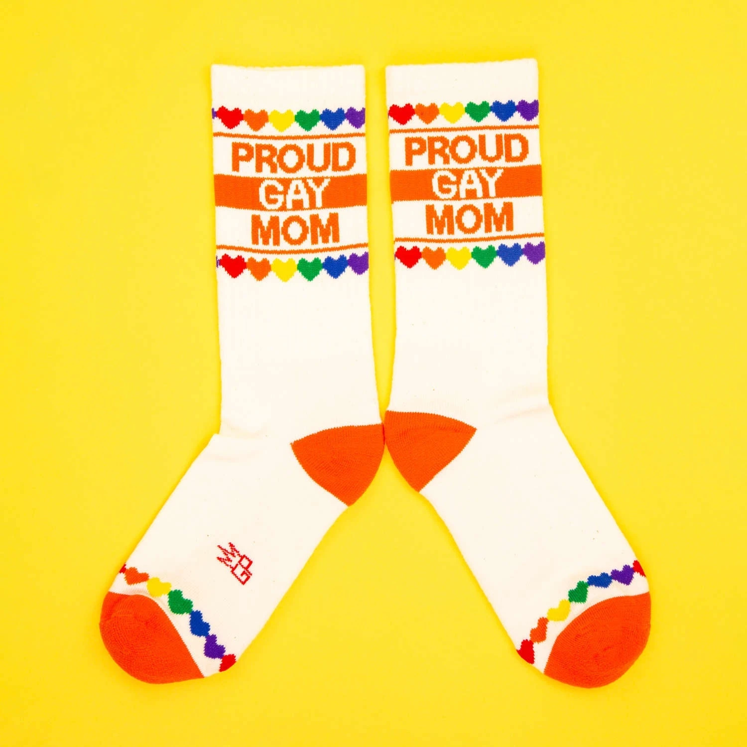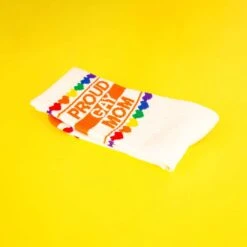 Love is love, and these socks are here to celebrate it in all its colorful glory. Perfect for the Proud Gay Mom in your life, these gym socks are as vibrant as a rainbow and as cozy as a hug from mom. Made in the USA, these one-size-fits-most socks boast a delightful rainbow heart border and cuff, adding a splash of pride to every step. Crafted from natural cotton with a spectrum of nylon accents, they’re not just socksthey’re a statement.