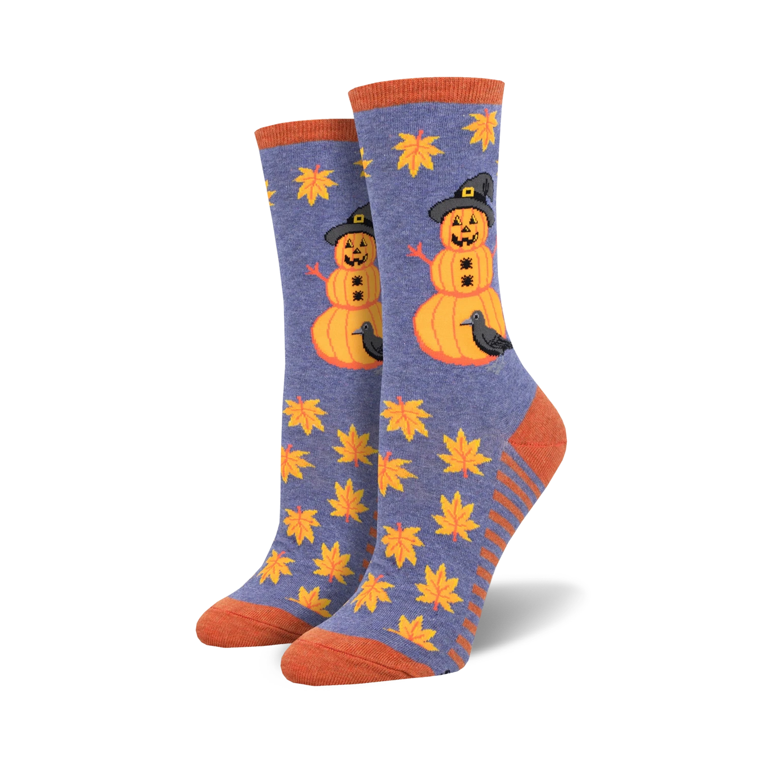 Calling all Halloween enthusiasts and sock aficionados! These Pumpkinman socks are the perfect accessory for any fall wardrobe. Picture this: a sea of orange and yellow fall leaves swirling across a backdrop of bright blue. And perched atop each sock, a jolly pumpkin sporting a pointy witch hat, its friendly face beaming and a loyal black crow perched on its shoulder. Get ready to turn heads and spread cheer wherever you go. Who knows, these socks might even cast a spell and bring you a few extra treats this Halloween!