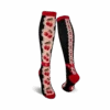 “Purrmaids” Knee High Socks for Women feature orange and black felines frolicking as mermaids amidst green and pink coral, orange starfish on a dark teal background. These cat-tastic leggings will make your feet feel like royalty! A fun way to add color, character, and whimsy to anyone’s wardrobe, these feline-tastic mermaid leggings will have you wishing for a Purrmaids party wearing a pair of Purrmaids!