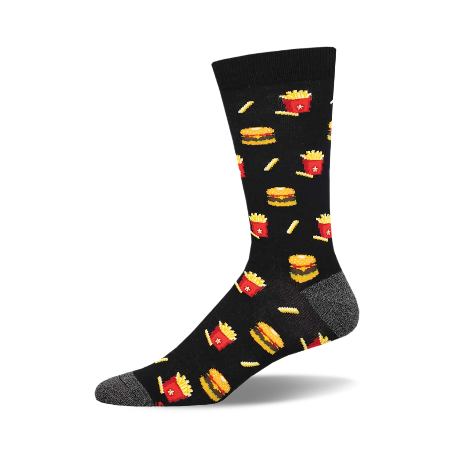 Unleash your inner foodie with our Quick Bite Bamboo socks! Adorned with mouth-watering cheeseburgers and crispy french fries, these black crew socks serve up undeniable style with a side of sass. Perfect for backyard BBQs, casual Fridays, or just lounging around, they’ll keep your feet as happy as your taste buds at a brunch buffet. Looking for a conversation starter at your next social gathering? Slip into these socks and watch the compliments roll in faster than your favorite fast food order!