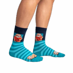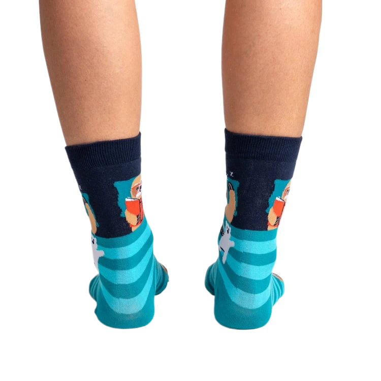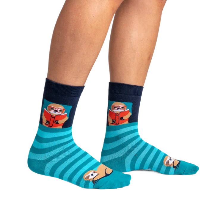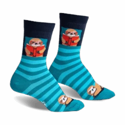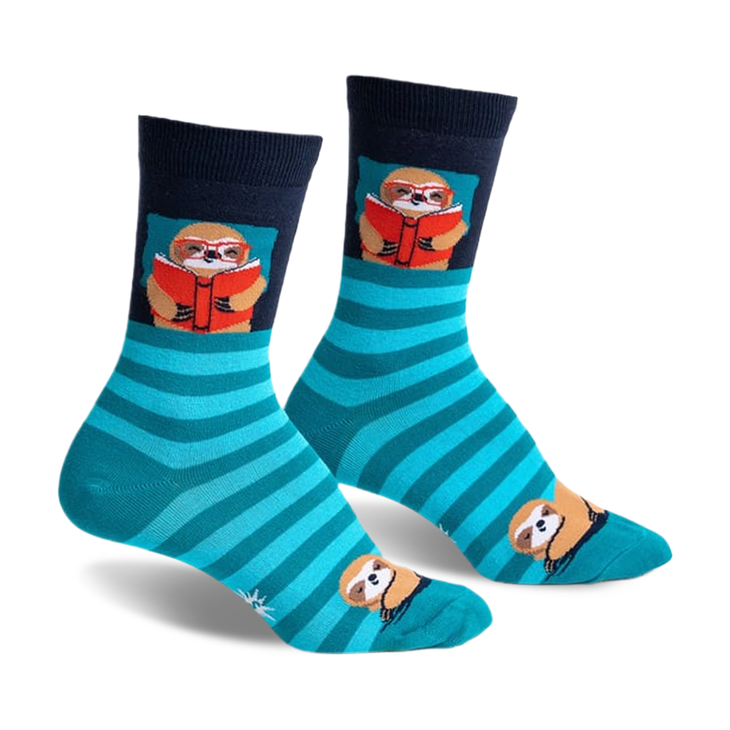 Sloths have mastered the art of relaxation, and now your feet can too! These delightful socks feature cozy sloths engrossed in their favorite books, offering a whimsical touch to your downtime. With their charming blue and green stripes, these socks are not just a treat for your feet but also a nod to the literary joys that await in every quiet moment. Slip these on and let the bookish sloths inspire your next reading adventure or nap.