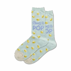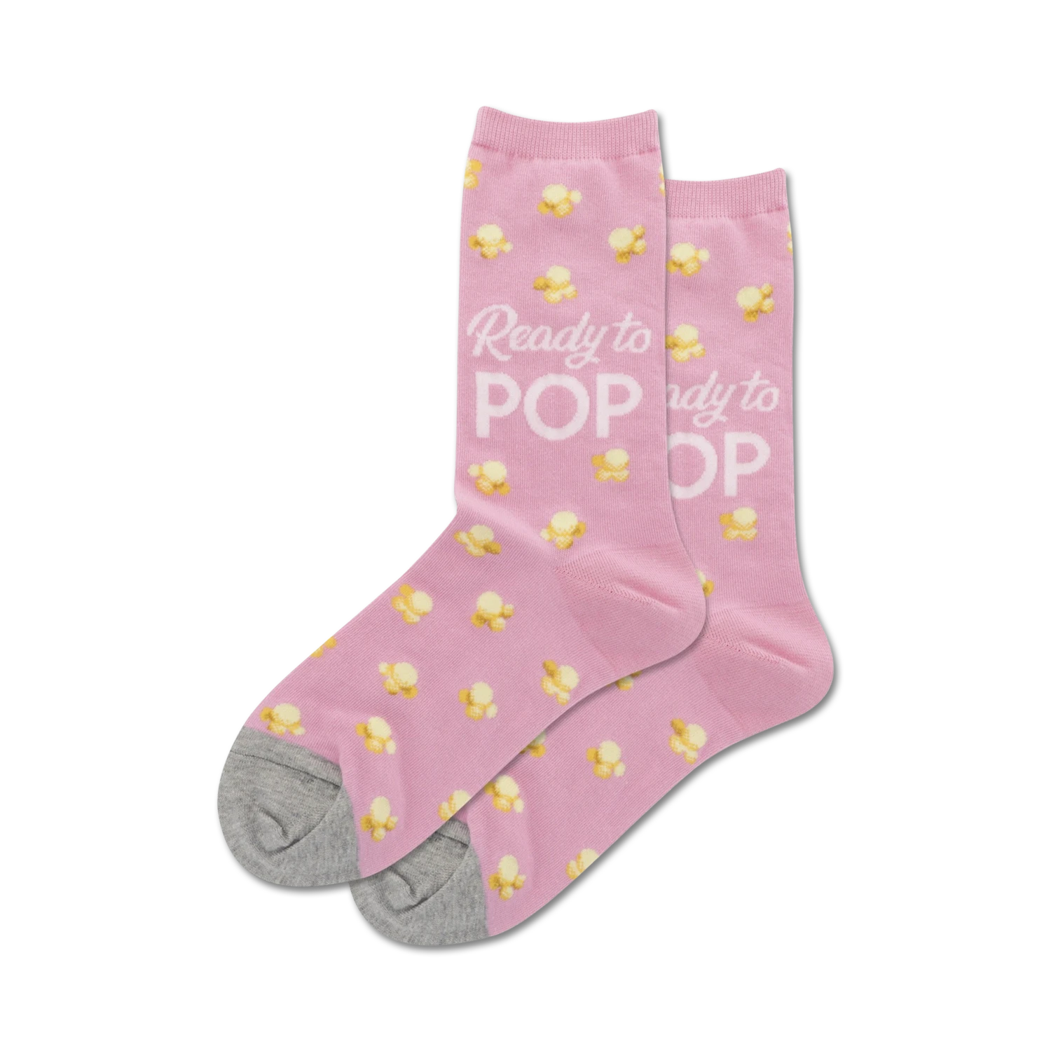 These “Ready to POP” socks are bursting with fun! Show off your popcorn pride with these bold pink women’s crew socks. Corn-y jokes optional.