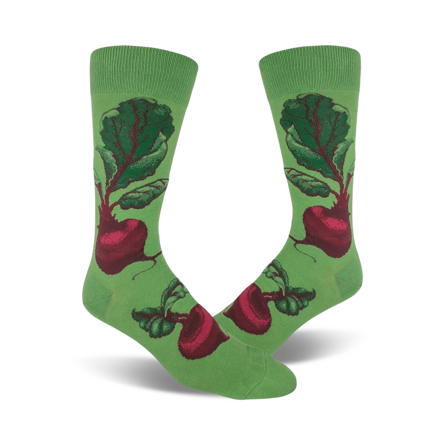 Kickstart your daily harvest with Red Beets novelty crew socks! These food-themed socks feature a vibrant green background teeming with red beets, complete with verdant leaves and earthy brown stems. With every step, you’ll feel like you’re strolling through a farmers market, surrounded by the freshest veggies. Perfect for the foodie or gardening enthusiast in your life, these socks add a dash of whimsy to any outfit. Who knew beets could be so darn fun?