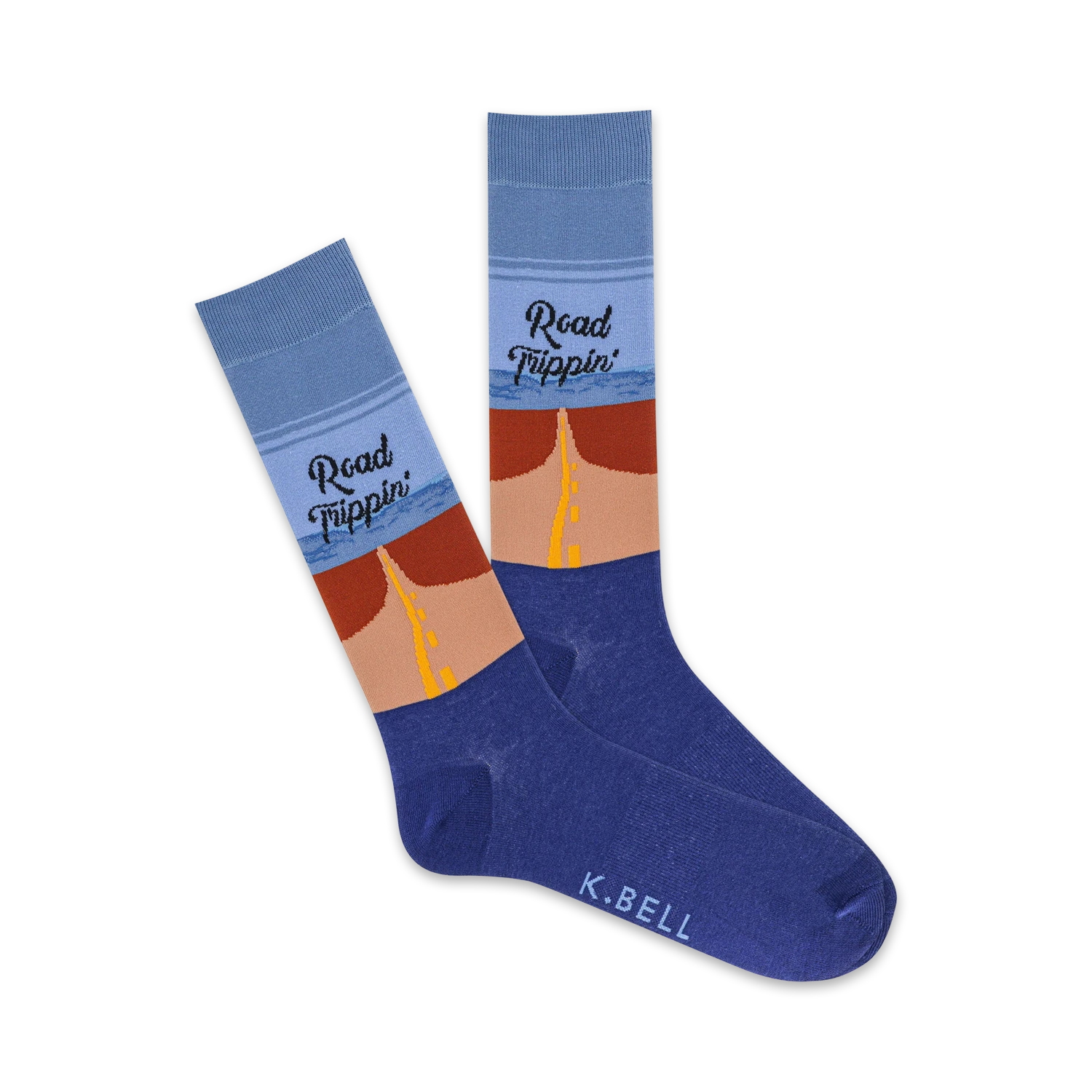 Retro Sunset Socks – Cruise into a chill vibe with these 2-toned blue Road Trippin’ socks. So comfortable you’ll feel like you’re drivin’ down a Pacific Coast Highway in a vintage convertible with the top down. The reinforced toe and heel give extra durability even for the longest journeys.