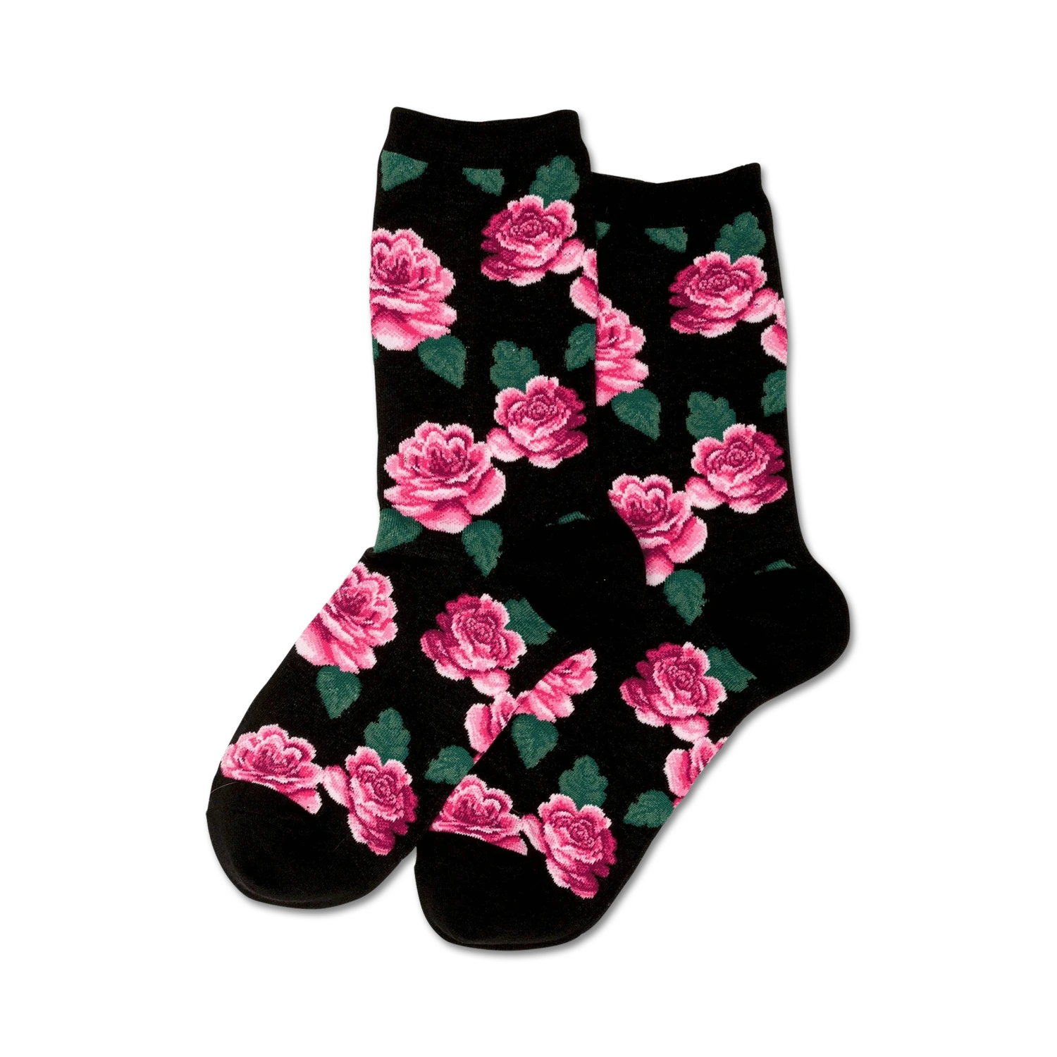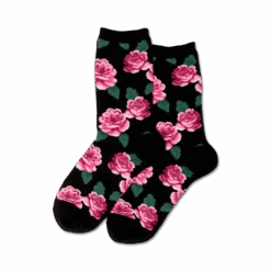 Say hello to Rose Print socks! These classy crew socks are designed for the modern woman who wants to make a statement without saying a word. With a vibrant pattern of pink roses and green leaves on a black background, these socks will add a splash of color to any outfit. Whether you’re rocking sneakers or heels, these socks will make sure you’re the center of attention. Plus, they’re made with high-quality materials that will keep your feet cozy all day long.