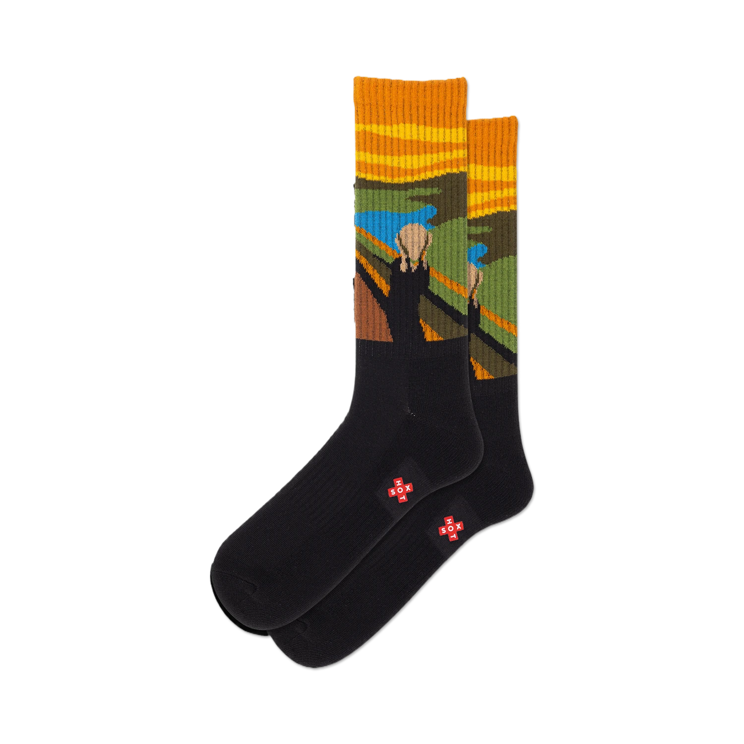 When it comes to art that echoes the intensity of human emotion, Munch’s “The Scream” stands unrivaled. These socks capture that iconic expression while ensuring your feet stay cozy and supported all day long. With cushioned soles and arch support, comfort is a given. Plus, the durable polyester yarn construction might just make you want to scream with delight.