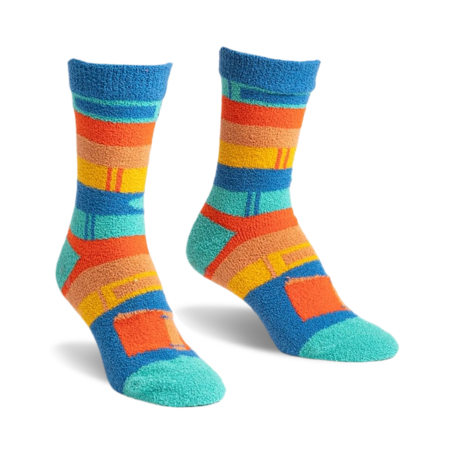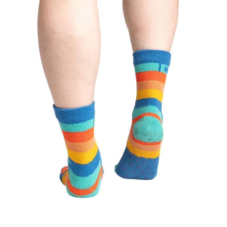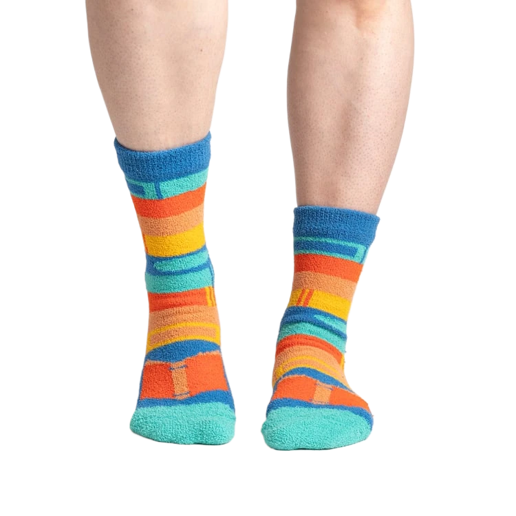 There’s something magical about a stack of books, each one a portal to a different world. Now imagine that joy wrapped up in fuzzy slipper socks, where vibrant stripes of blue, orange, yellow, and green create a cozy, delightful blend. Perfect for those who find solace in a good book and the snug comfort of warm feet, these socks are your new favorite reading companion.