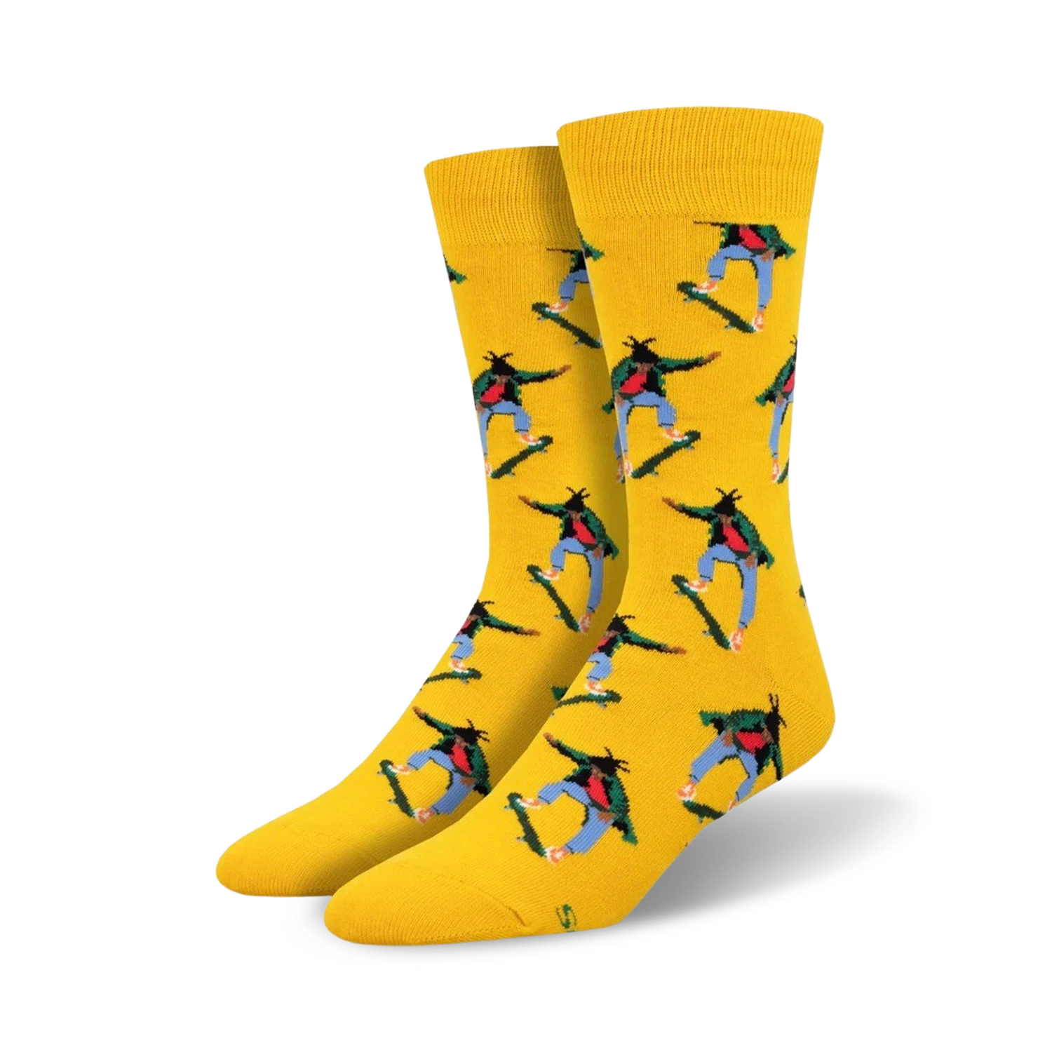 The Skate Life Crew socks will turn you into a pro skater, or at least make you look like one! They’re bright yellow with a pattern of a skater dude with a sick green shirt, blue pants, red hat, and shredding a rad red and yellow skateboard. Show off your love for skateboarding with these fun socks!