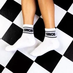 Snob socks: The perfect accessory for anyone who wants to add a touch of humor to their wardrobe. These white socks feature the word “Snob” in bold black letters, so you can show off your personality wherever you go. Whether you’re wearing them to a party, a meeting, or just running errands, these socks are sure to get a laugh. Plus, they’re also really comfortable, so you can wear them all day long without having to worry about your feet hurting.