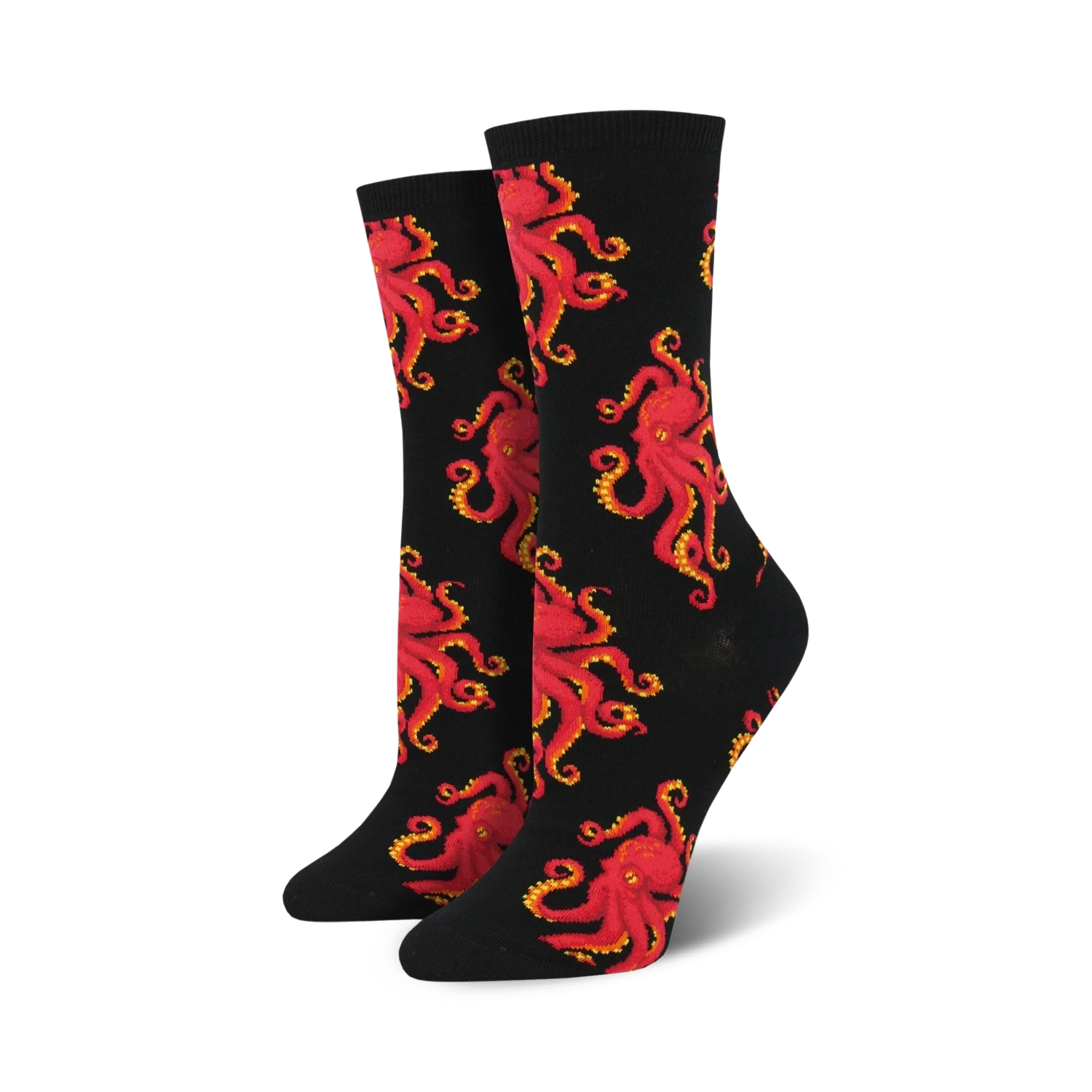 Socktopus socks: The black sea of socks just got invaded by eight-armed wonders! These women’s crew socks are covered in a vibrant pattern of red octopuses with big yellow eyes and bright orange suckers. Slip on a pair and show off your cephalopod style. Fun fact: Did you know that octopuses can camouflage themselves by changing color and texture? Sock-topus socks: because blending in is overrated!