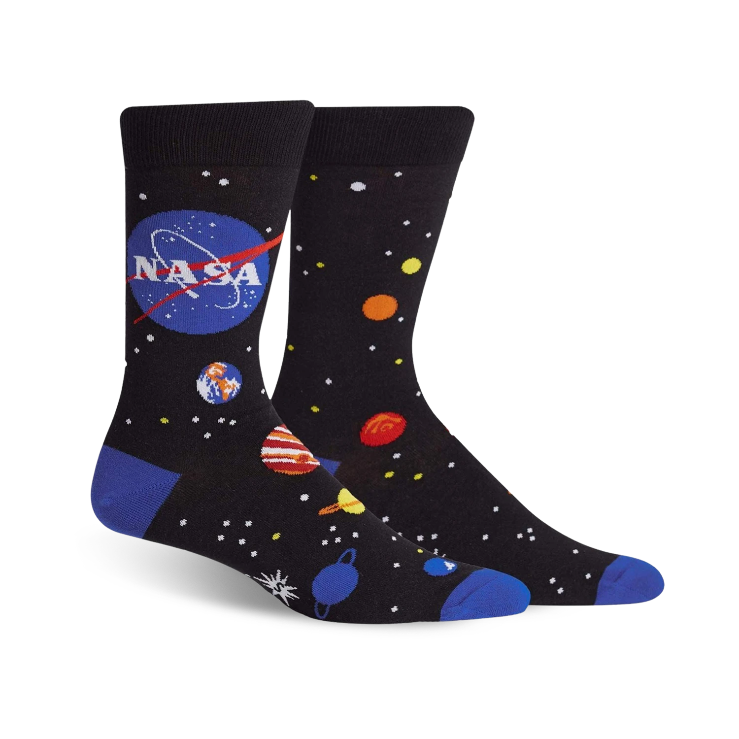 Take a cosmic journey with our Solar System socks! Blast off in style with vibrant planets, stars, and the iconic NASA logo adorning these crew-length socks. Let your feet explore the universe while you conquer the day. Get ready to boldly go where no sock has gone before, and be the envy of every space enthusiast while you’re at it.