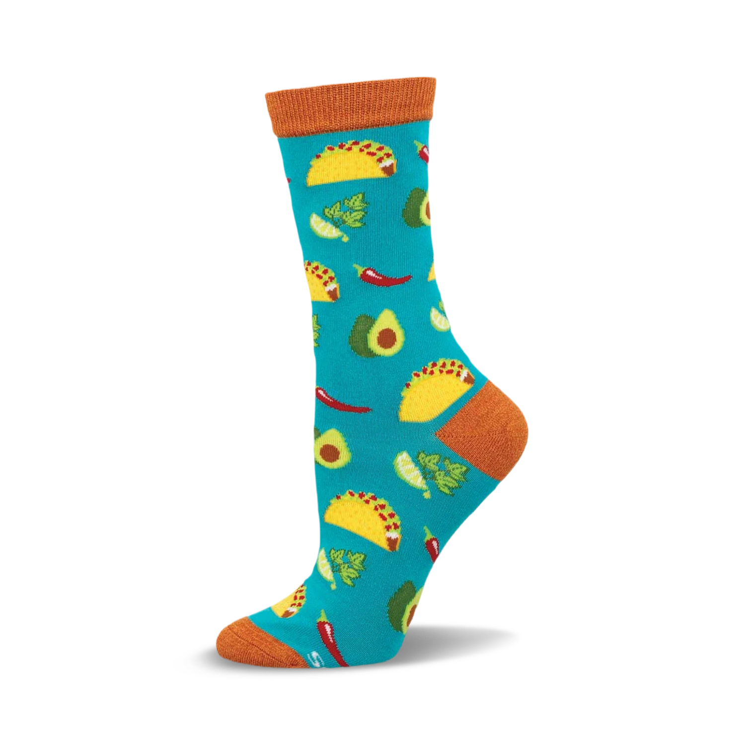 Tacos are not just a food; they’re a celebration in every bite, and what better way to honor this culinary fiesta than with socks that echo the joy of taco time? Embrace the playful spirit of taco nights with these vibrant blue socks adorned with cheerful yellow tacos, lively green avocados, and fiery red chili peppers. With an orange cuff adding a zest of its own, these socks ensure your love for tacos doesn’t stop at the dinner table. It’s a party for your feet, and you’re invited!