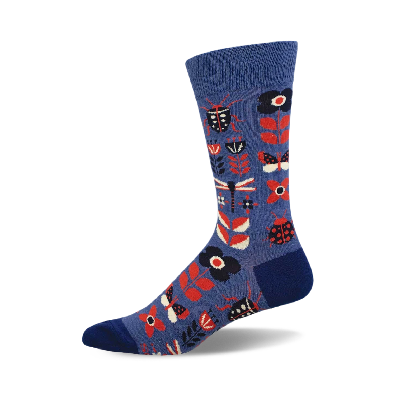 In the grand tapestry of nature, bugs, flowers, and dragonflies are the unsung heroes of the ecosystem. Celebrate this charming trio with our “Sorry to Bug You” socks, where a burst of red and black bugs dance among vibrant blooms and dragonflies on a serene blue background. These socks are your cheerful nod to nature’s playful side, perfect for those who appreciate the quirky beauty of the great outdoors.