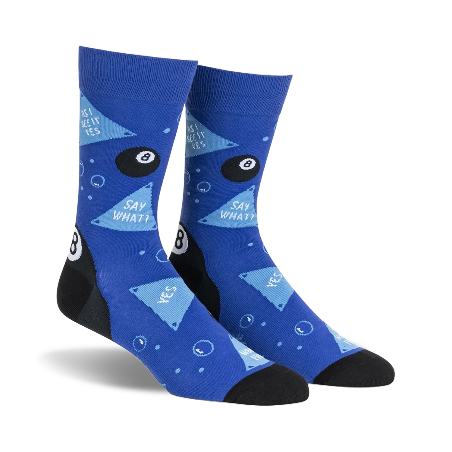 Say yes to the most sockin’ awesome socks on the market! These blue socks with spunky black billiard balls and speech bubbles will have you racking up a perfect score in the style department. Perfect for those who love quirky pop culture patterns and want to make a statement with their feet. You’ll be the talk of the town, so get ready to drop jaws wherever you go!