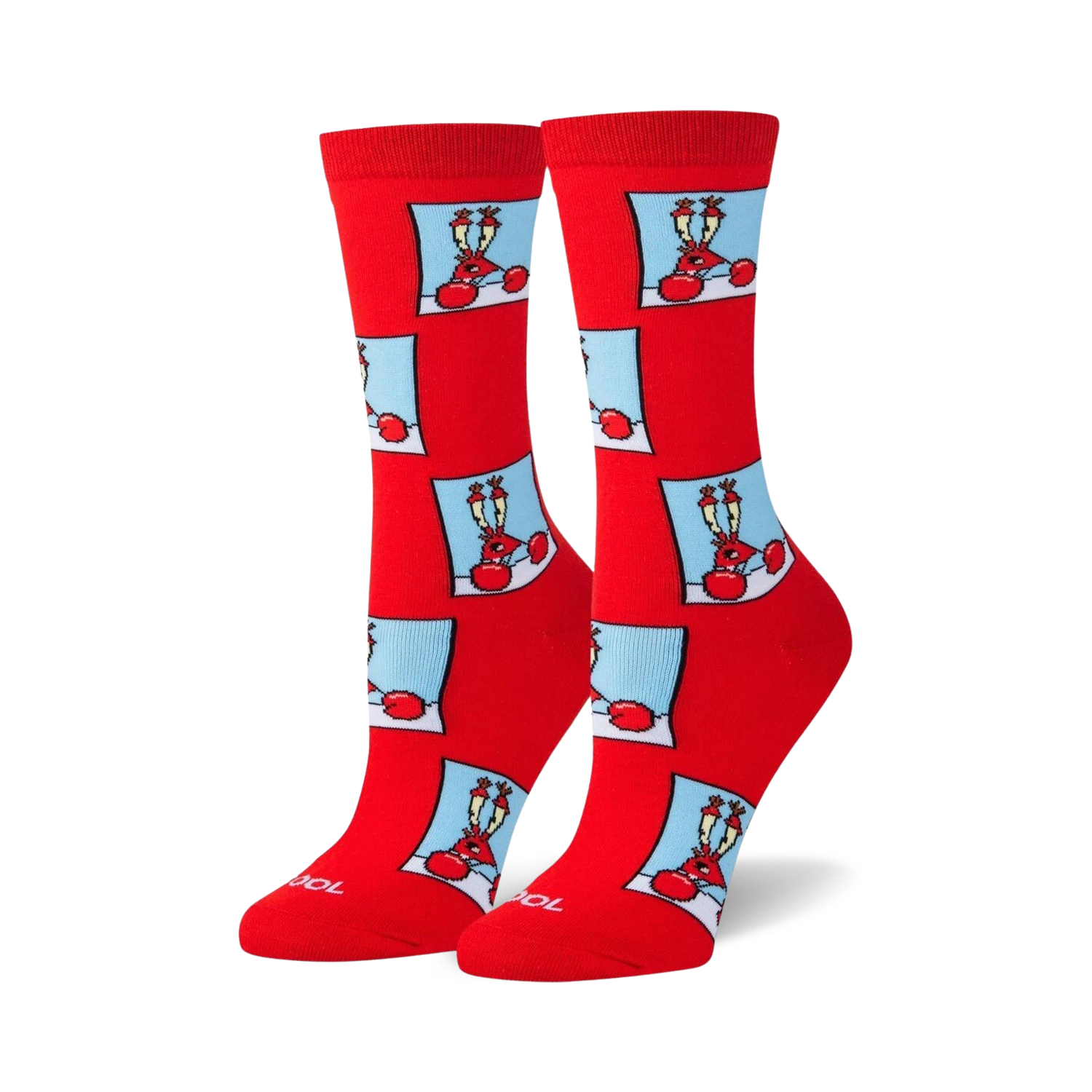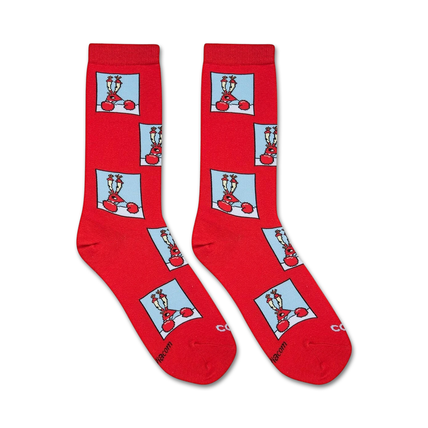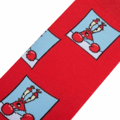 Ready, set, Krabs! SpongeBob’s beloved Mr. Krabs lends his confused expression to these bright red socks, a hilarious and unforgettable accessory. Like a tidal wave of fun, these socks will have you saying, “Ahoy there, style!”