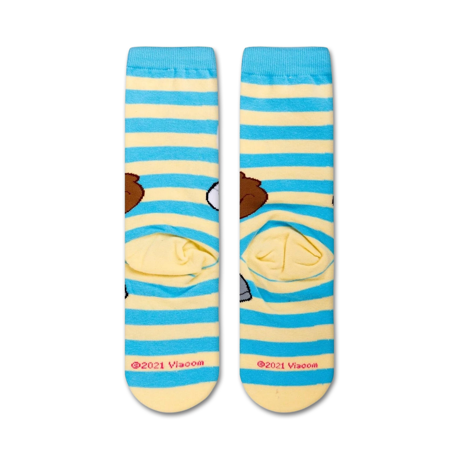 Sandy Cheeks from SpongeBob SquarePants is ready for adventure, and she’s brought her trusty blue and yellow striped socks! Blast off into the cosmos and explore new worlds with Sandy! These socks are perfect for anyone who loves SpongeBob, Sandy Cheeks, or just plain fun socks.