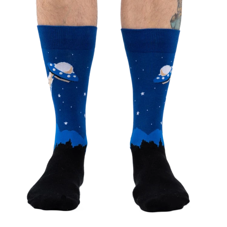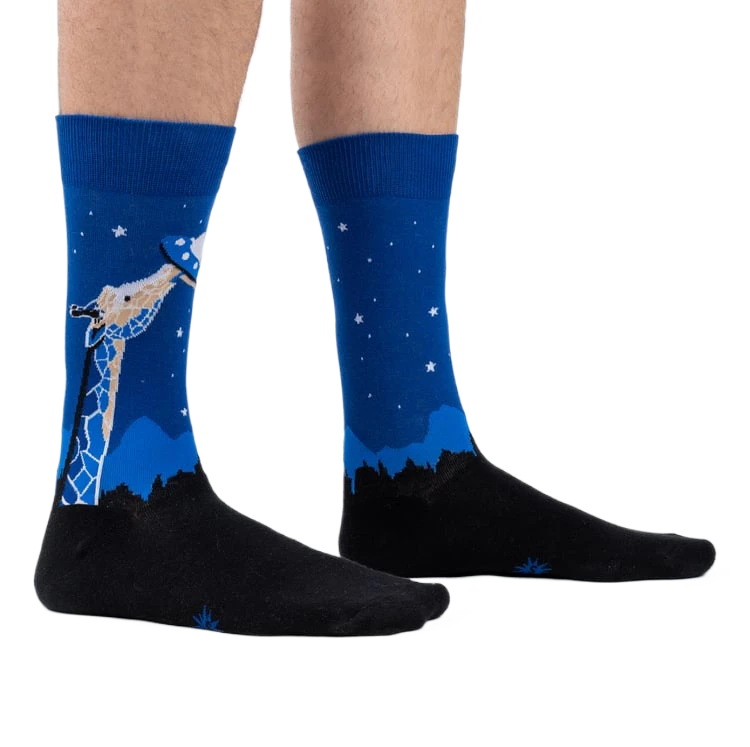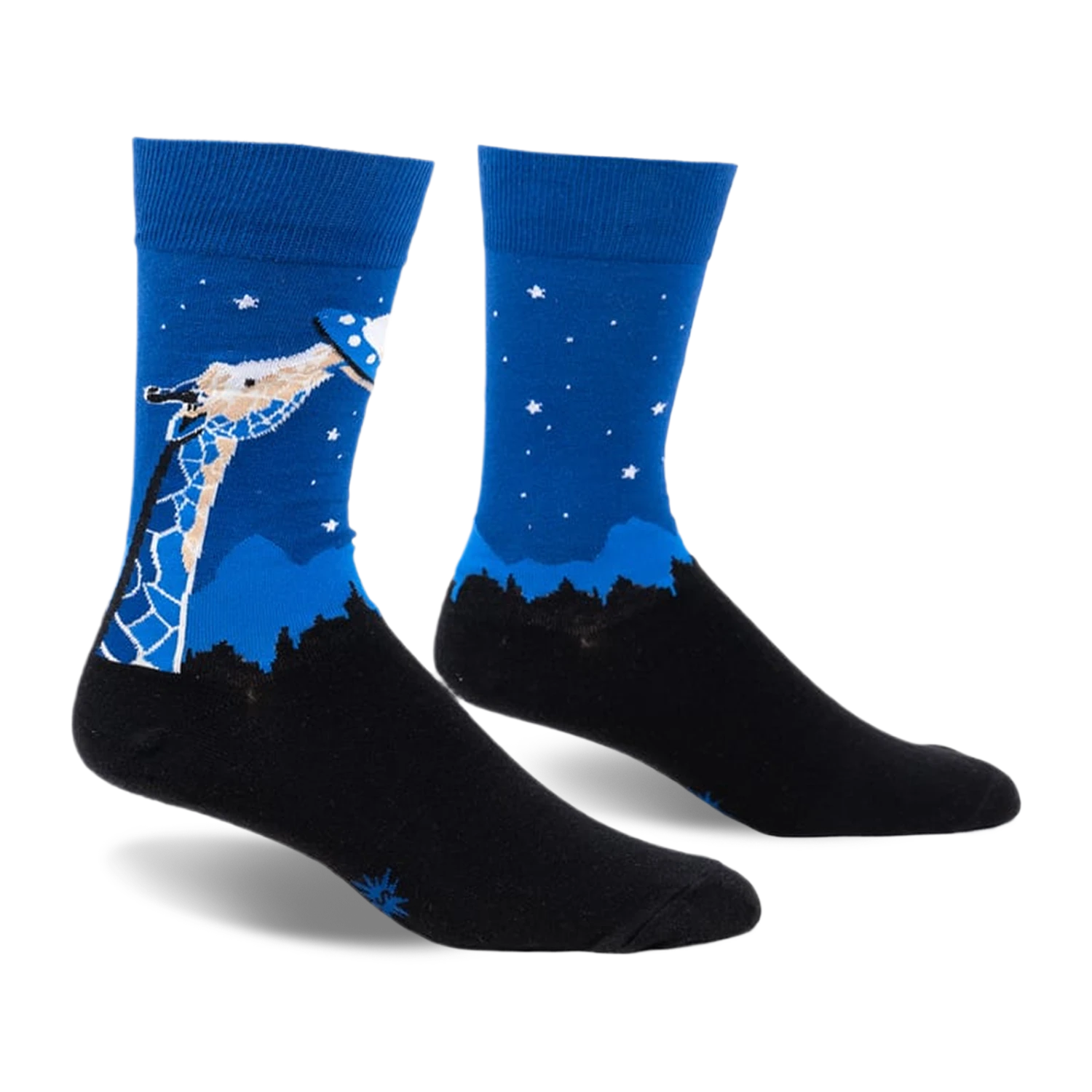 Ever think a giraffe could reach the stars? These socks seem to think so! With a whimsical design featuring a giraffe stretching its neck towards a UFO, you’re all set for an interstellar adventure. Whether you’re lounging at home or stepping out, these socks make sure you’re never too far from a cosmic safari. Embrace the fun and mystery of the skies right at your feet!