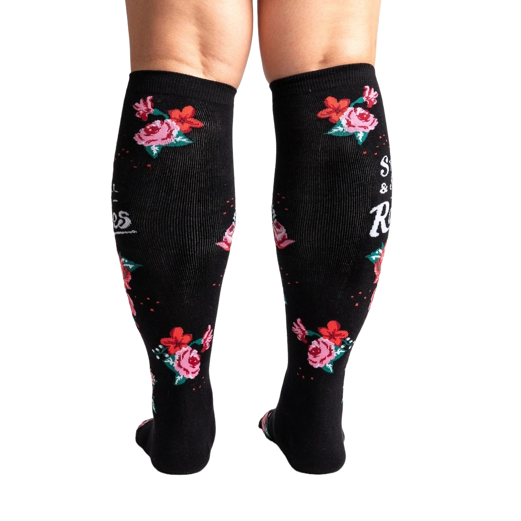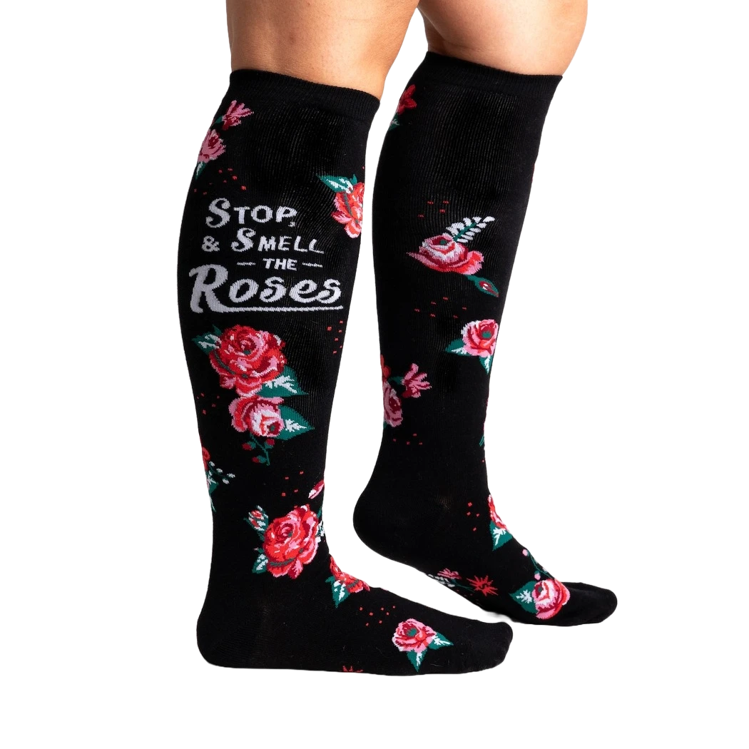 Behold, the ‘Stop & Smell the Roses’ knee-high women’s socks a floral masterpiece that’ll make you the talk of the town! Adorned with vibrant red, pink, and white roses, they’re like a summer garden blooming on your feet. And guess what? They come with a built-in reminder to slow down and appreciate the little things in life. Life’s too short to rush through it without stopping to smell the roses… or wear rose-adorned socks.