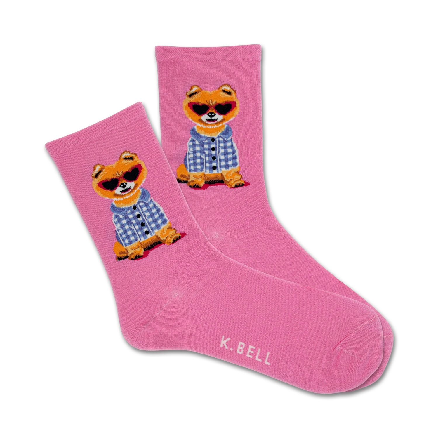Trade your boring, basic socks for these Summer Dog socks! These crew length socks for women feature a playful pattern of cartoon pups rocking sunglasses and blue plaid shirts, adding a splash of fun to your everyday style. Get ready to strut your stuff and make a fashion statement wherever you go!